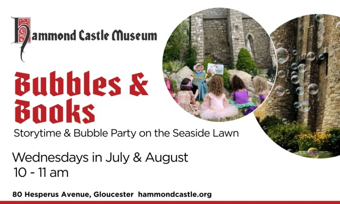 Doors open at 10 am. Stories start at 10:15 am. Feel free to bring a blanket for your little one to cuddle with while we enjoy Storytime on the ocean-facing lawn. Don’t forget the sunscreen! We’ll have thousands of bubbles, coloring, snacks and music too! We encourage little ones to dress up in their favorite crown, gown or anything else that makes them happy!