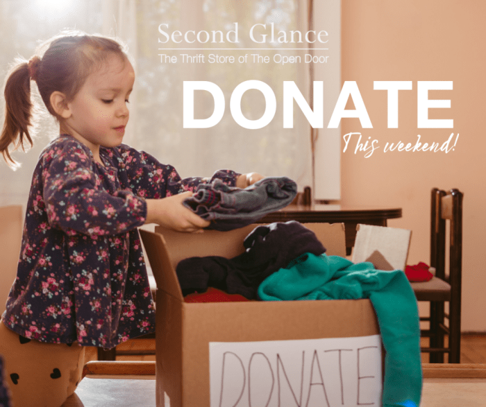 WHAT: Second Glance will be accepting donations of clean, gently worn, unripped clothing.