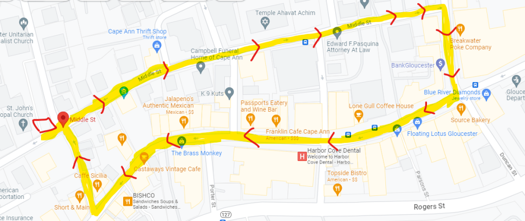 Registration and check-in at the Gloucester 400+ tent on front lawn of UU Church at corner of Church and Middle Street (see map below)