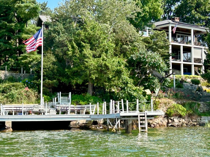 Taking Flight. This home along the Annisquam River has a beautiful sculpture of a bird taking flight from its dock. Can you see it?