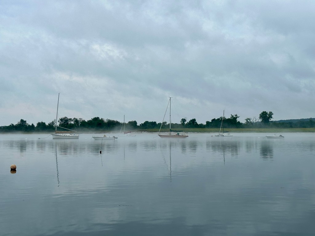 “…Eโs 2 canvases*. Sailboat without sky as yet. Tonight Bertha Frank & Edgar Cobb came up to say good bye for the season. Everyone else in Truro had their supper dishes washedโbut we hadnโt begun yet. E. was still working when they arrived. Heโs been plenty interrupted today. We didnโt swimโit looked so cold. Ginny said not cold but very dirty + water full of pink jelly fish.