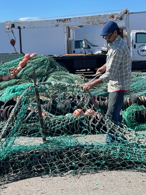 I always consider my self extremely lucky when I visit the Jodrey State Fish Pier and get to watch the fishermen mending their nets and get a chance to say hello . Such nice people .