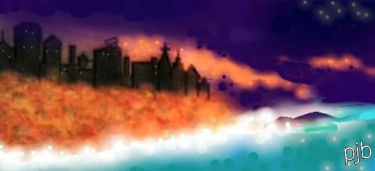 My portrait is entitled “AUTUMN SEASCAPE,” and it’s done in watercolor, pen and digital paint.
