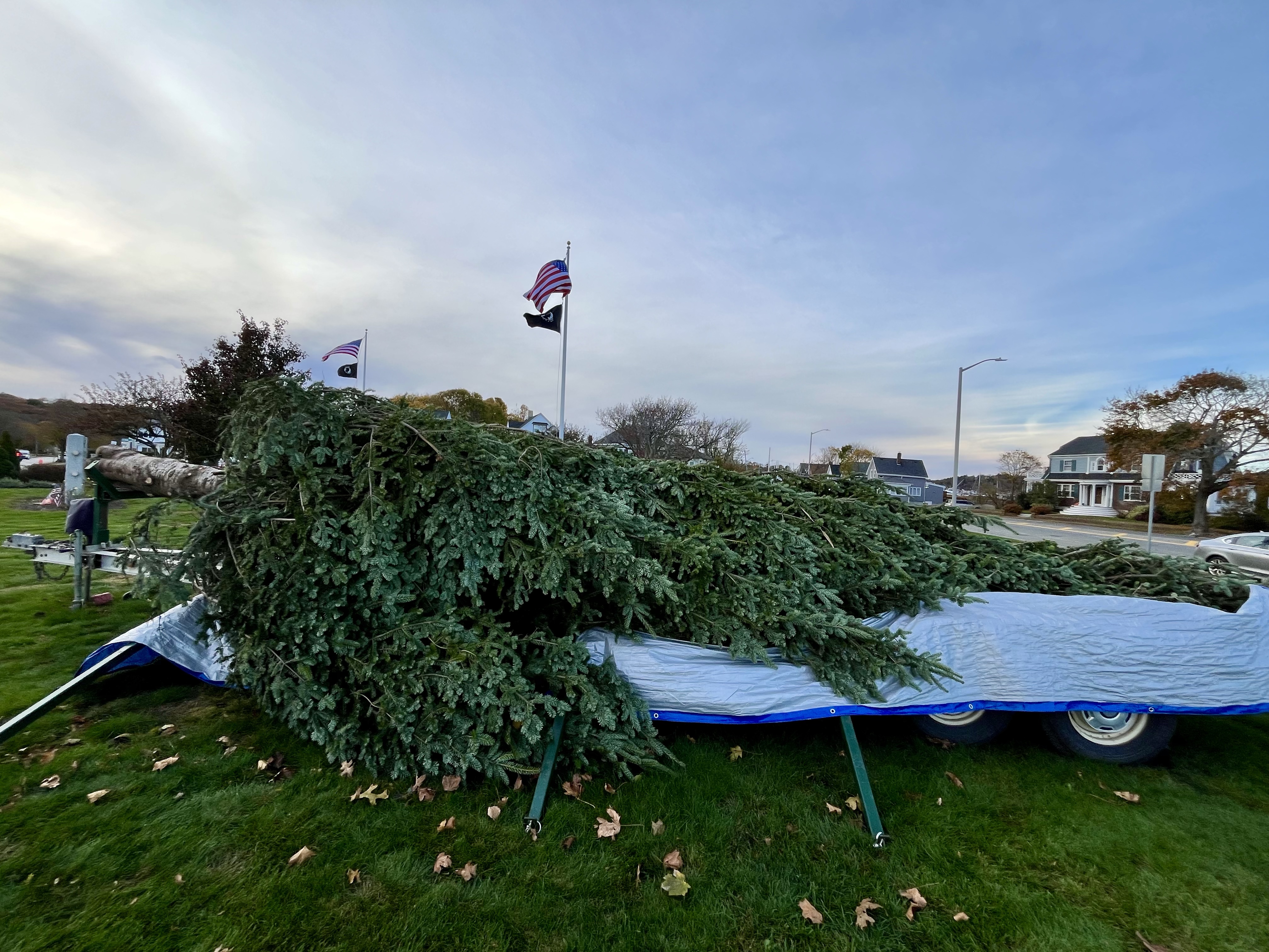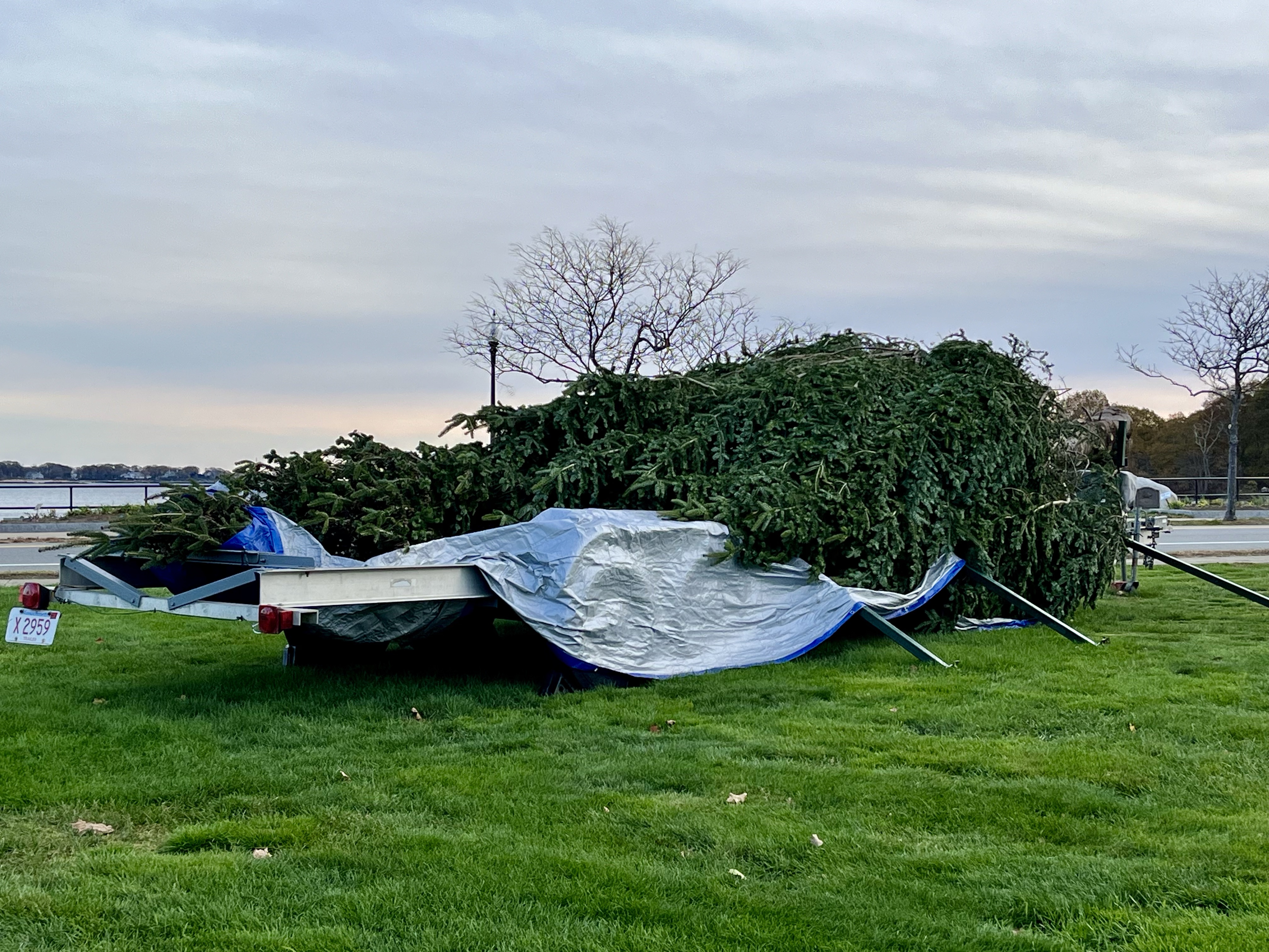 The tree has arrived from Nova Scotia and is awaiting the annual Christmas Tree Lighting. You can follow the Kent Circle Tree Lighting Facebook page for updates; the lighting is traditionally held the Sunday following Thanksgiving: Nov 26 2023. The annual parade will kick off from the State Fish Pier at 3 PM and proceed to Kent Circle for the tree lighting. Hoping to see you there! **UPDATED SINCE POST CREATED: The tree is up! Thanks Ringo and crew!***