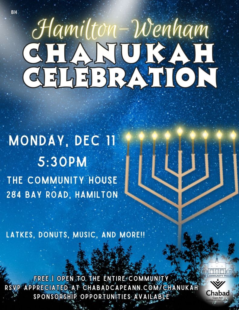 In keeping with the spirit of Chanukah of always adding light, and the stronger the darkness the more light needs to be added, this year there will be a Public Chanukah celebration and Menorah Lighting in Hamilton – Wenham on Monday, December 11th at The Community House.