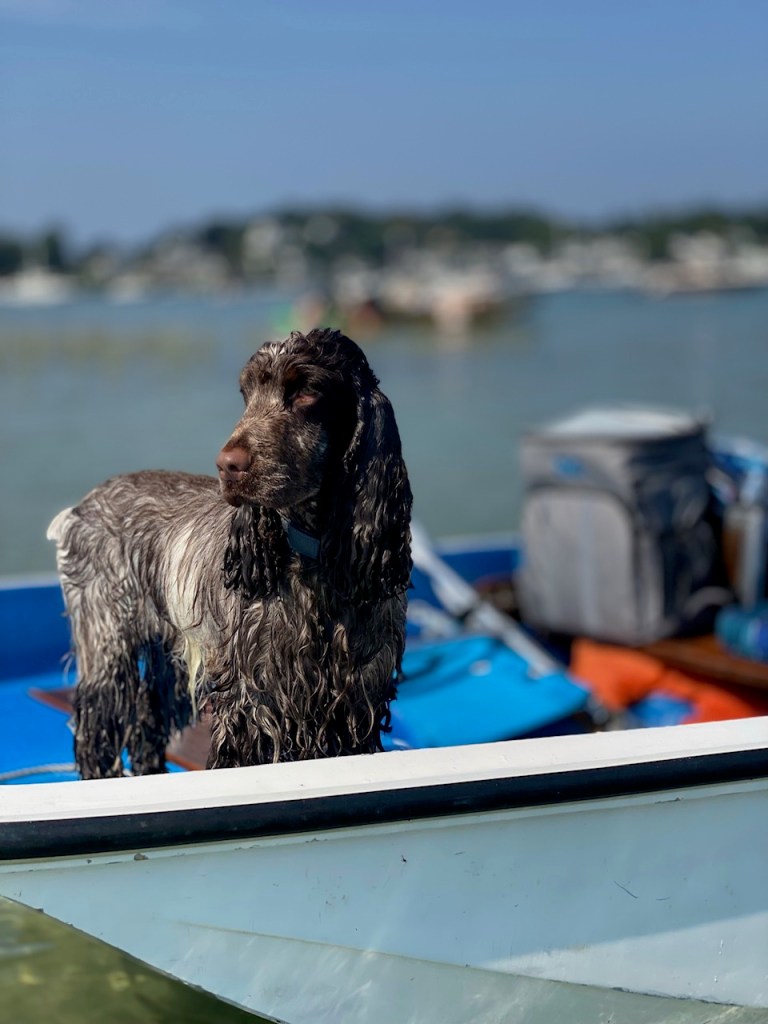 Images: Have you seen…? The blue crescent moon rising over Rt. 128 between the rotaries is the OG hanging lights design–an annual beacon heralding the Seasons that’s inspired others; the magical lights reflecting Goose Cove; ‘Merry’ on Cherry hedge; Days pond’s tiny floating Santa; Santa and his reindeer flying in the sky (seen from Rt. 128)