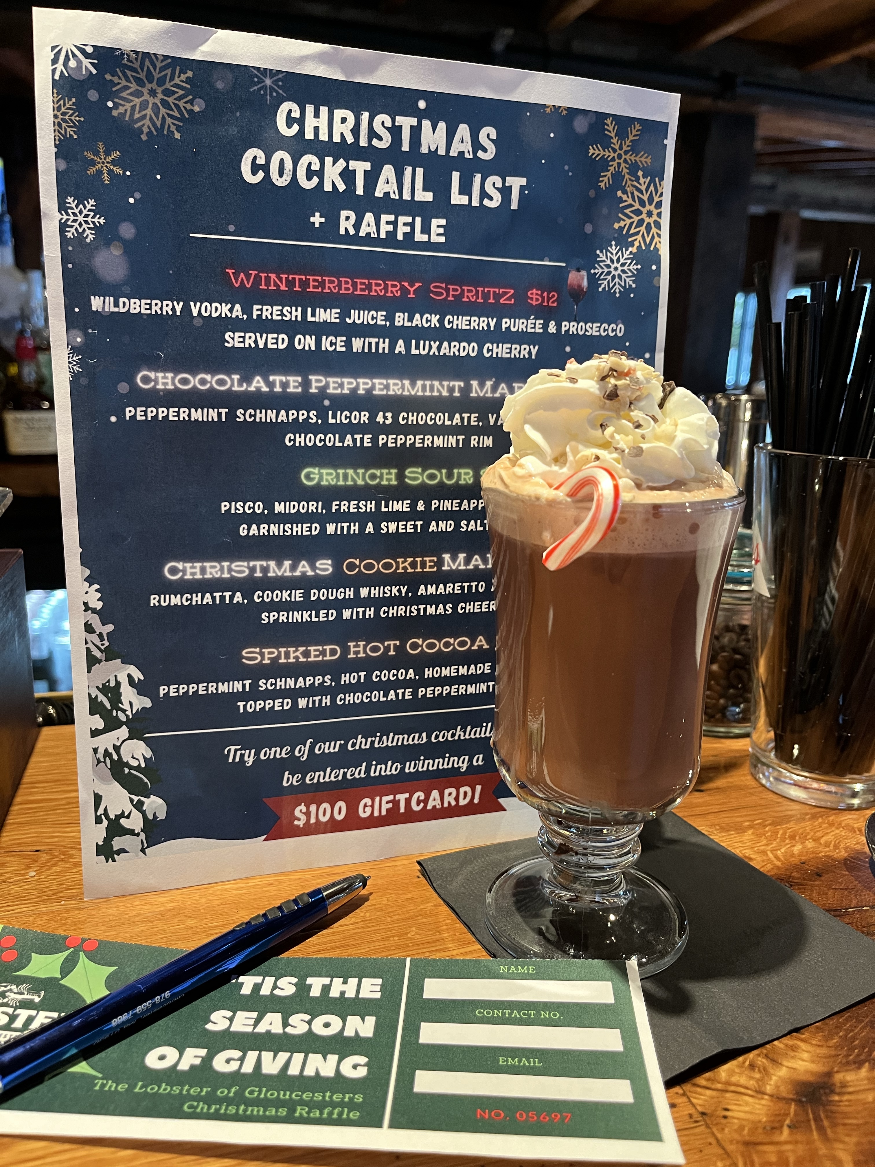 We impulsively decided to go to The Lobster on East Main St for lunch a couple of days ago and couldn’t have been happier with that decision. In a win-win situation, I ordered one of the Christmas cocktails and got myself a ticket into a raffle for a gift card. The peppermint hot chocolate was perfect! I also had the buffalo style chicken tenders and they will almost surely be my “best thing I ate this week” on the next podcast. Jim had a chicken panini and the homemade tomato soup. Delicious. The atmosphere is welcoming, the service friendly and the food fantastic. They will be open until Jan 15 for a break until April, so put it in your rotation before then!