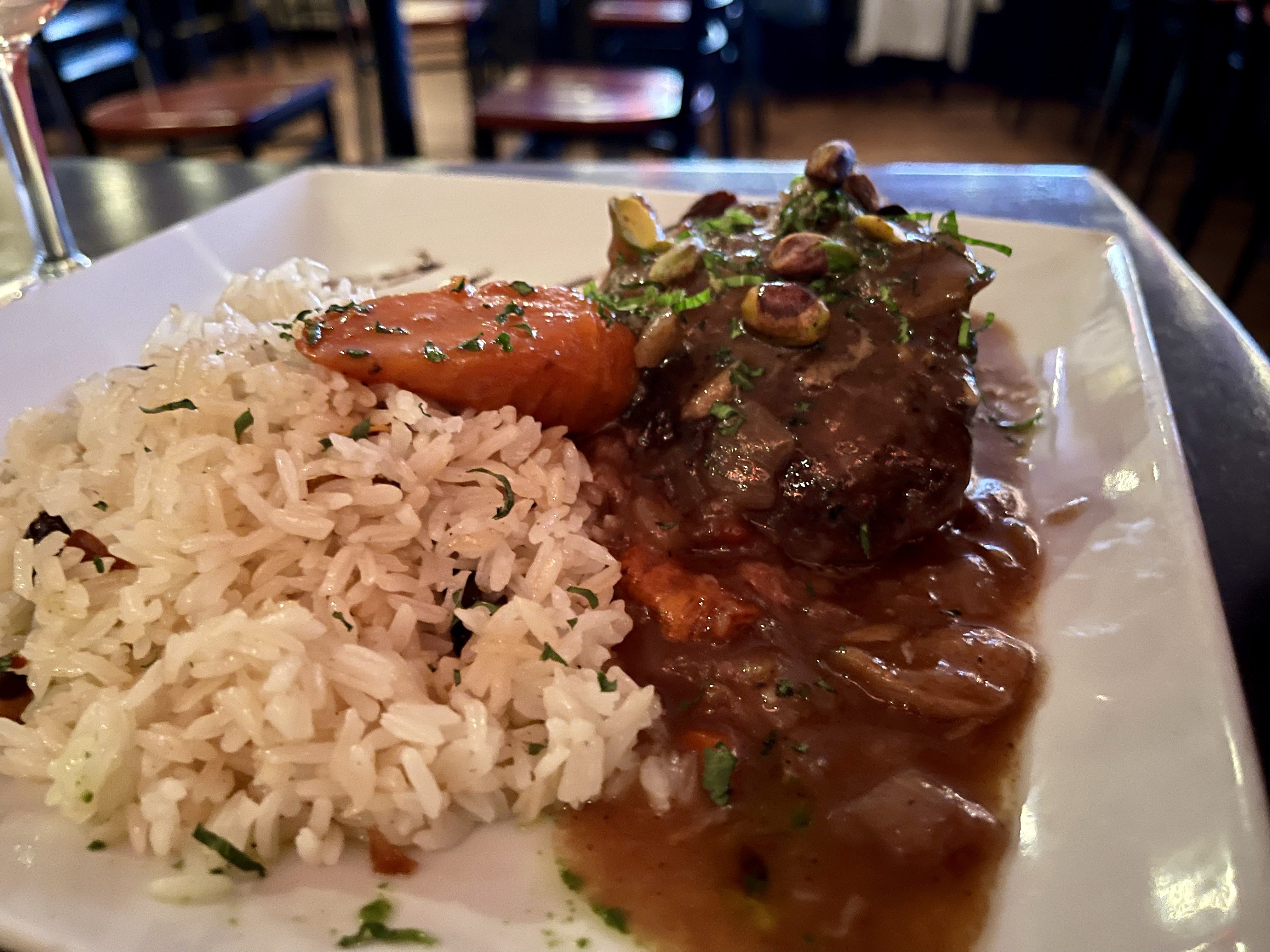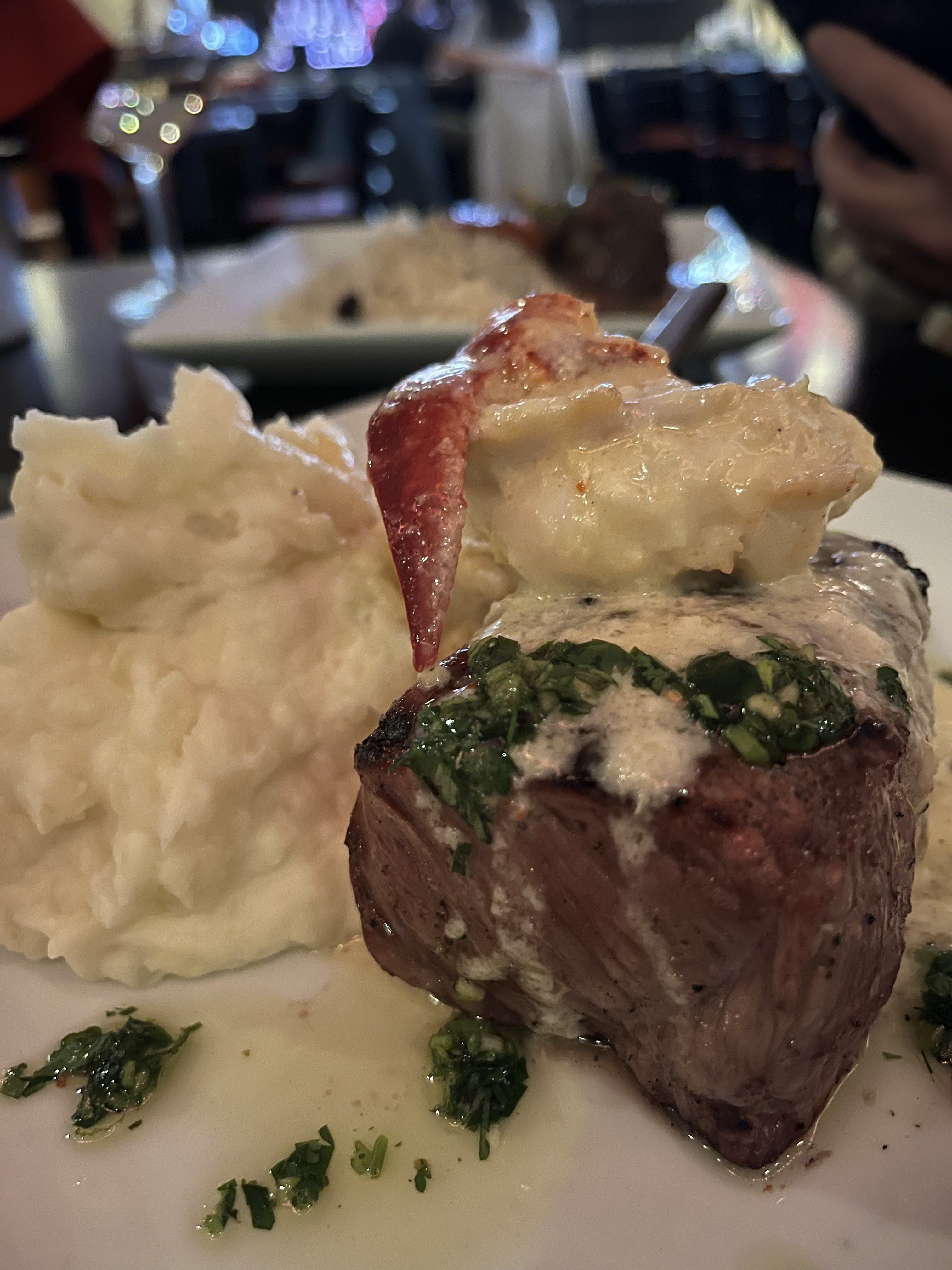 We had a lovely dinner with friends at Oliver’s Harbor on Main St to end 2023 and celebrate a new year approaching. A special menu was offered which Jim and I took advantage of. I had the surf and turf preceded by lobster bisque. Jim had braised lamb following an eggplant appetizer. Our friends, Susan and Leo ordered chicken and salmon risotto from the menu. It was all well prepared and delicious! The service, as always, was friendly and efficient. It’s a family run establishment and comes with the advantages of family ties to make it an extra enjoyable experience once again. Thank you Oliver’s for helping us celebrate a special meal with special friends to end 2023 and welcome 2024! We’ll be back soon!