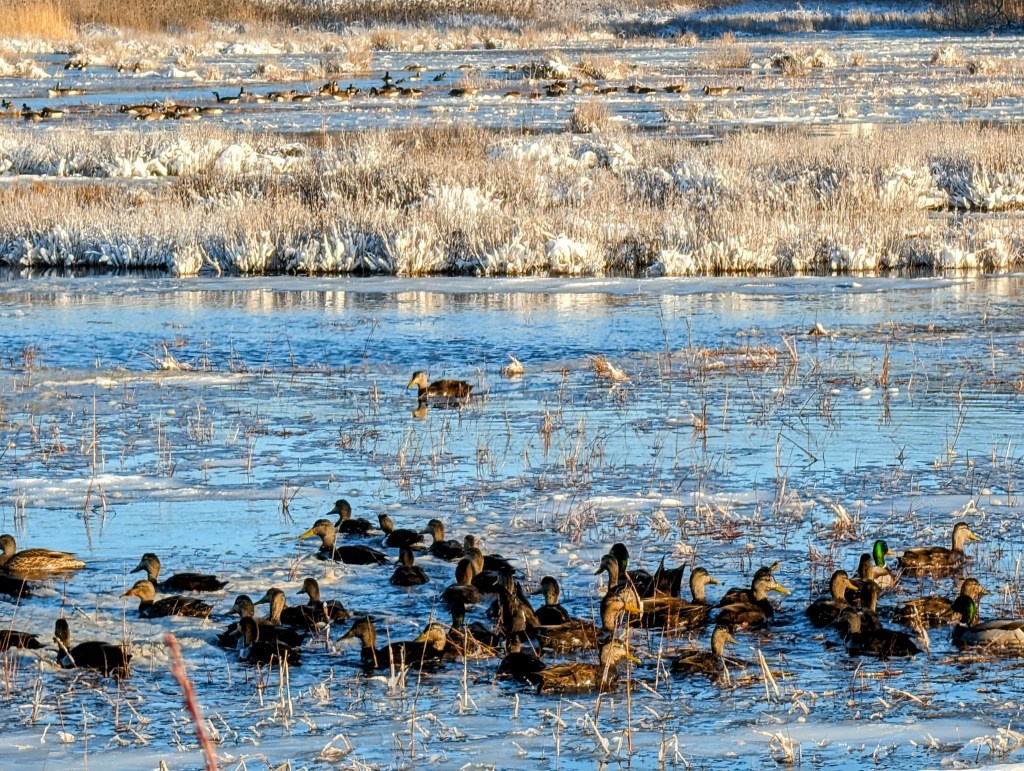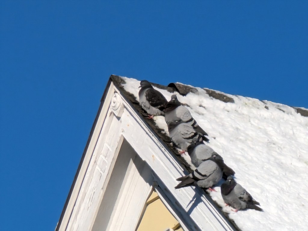 Windy huddles and blanketed. This much first snow 2024 #GloucesterMA