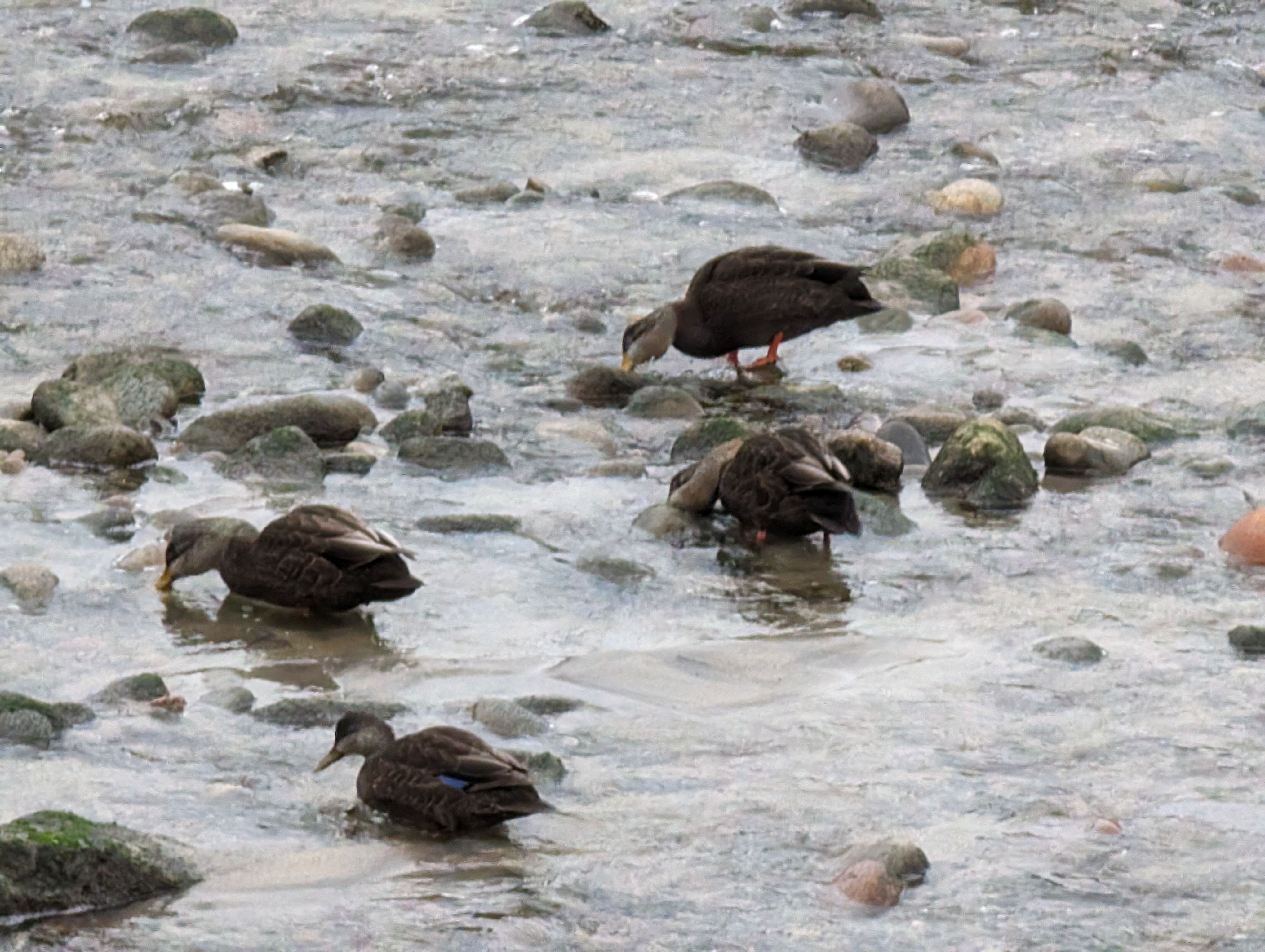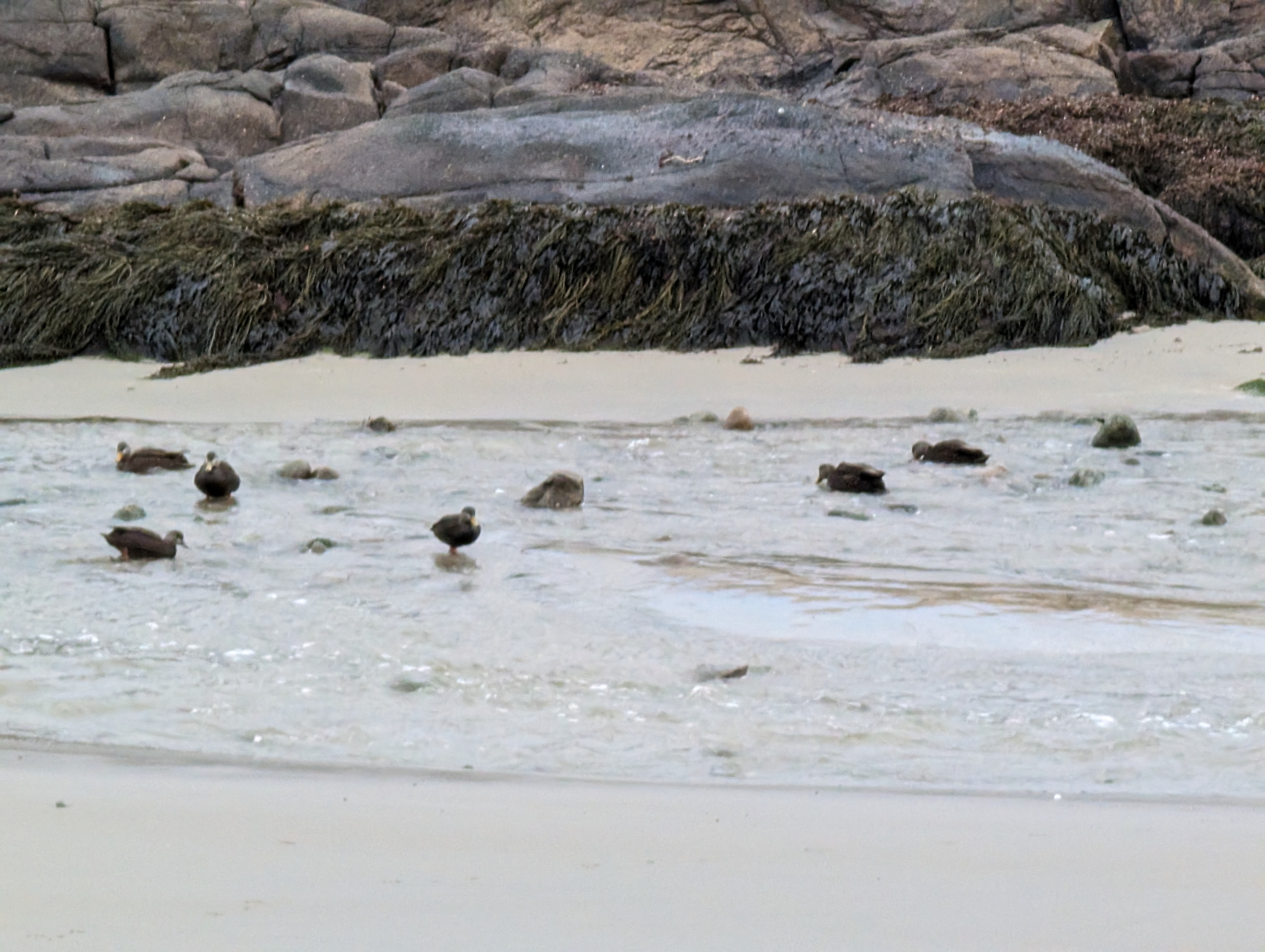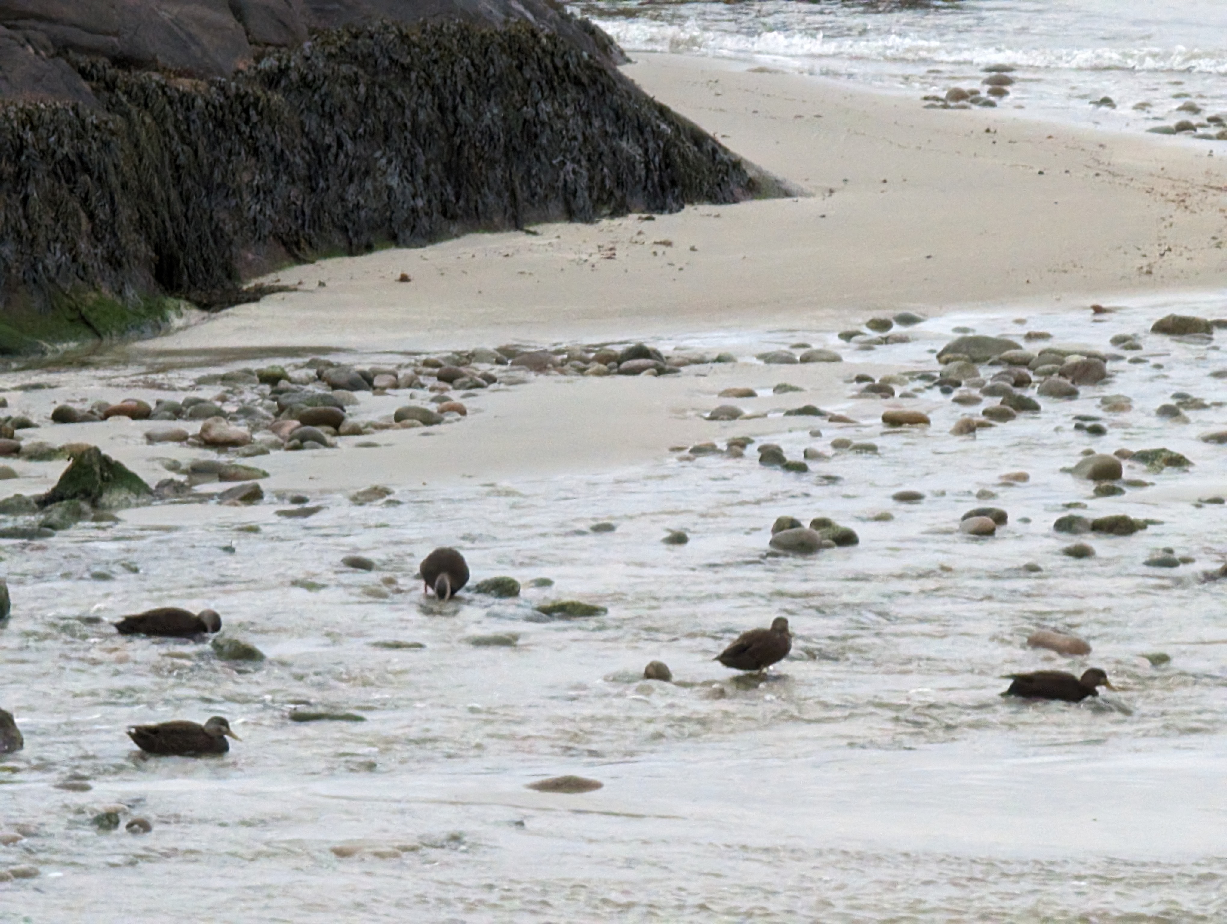 Images closer, closer, closer 2/3/2024: Those rocks are moving 🙂 Long Beach regulars slow float & feed, waddle, or stand when they hit a sandbar stretch.