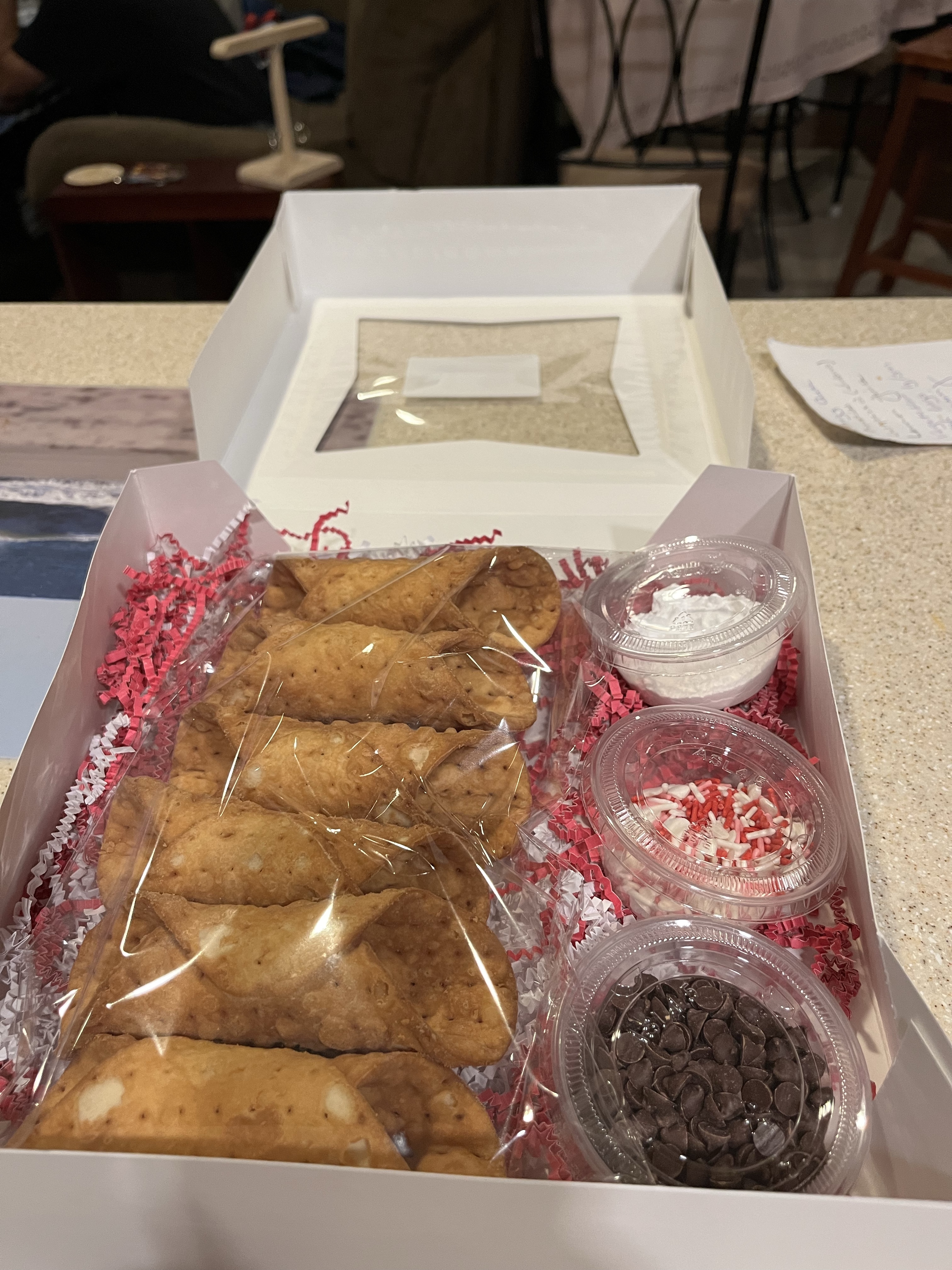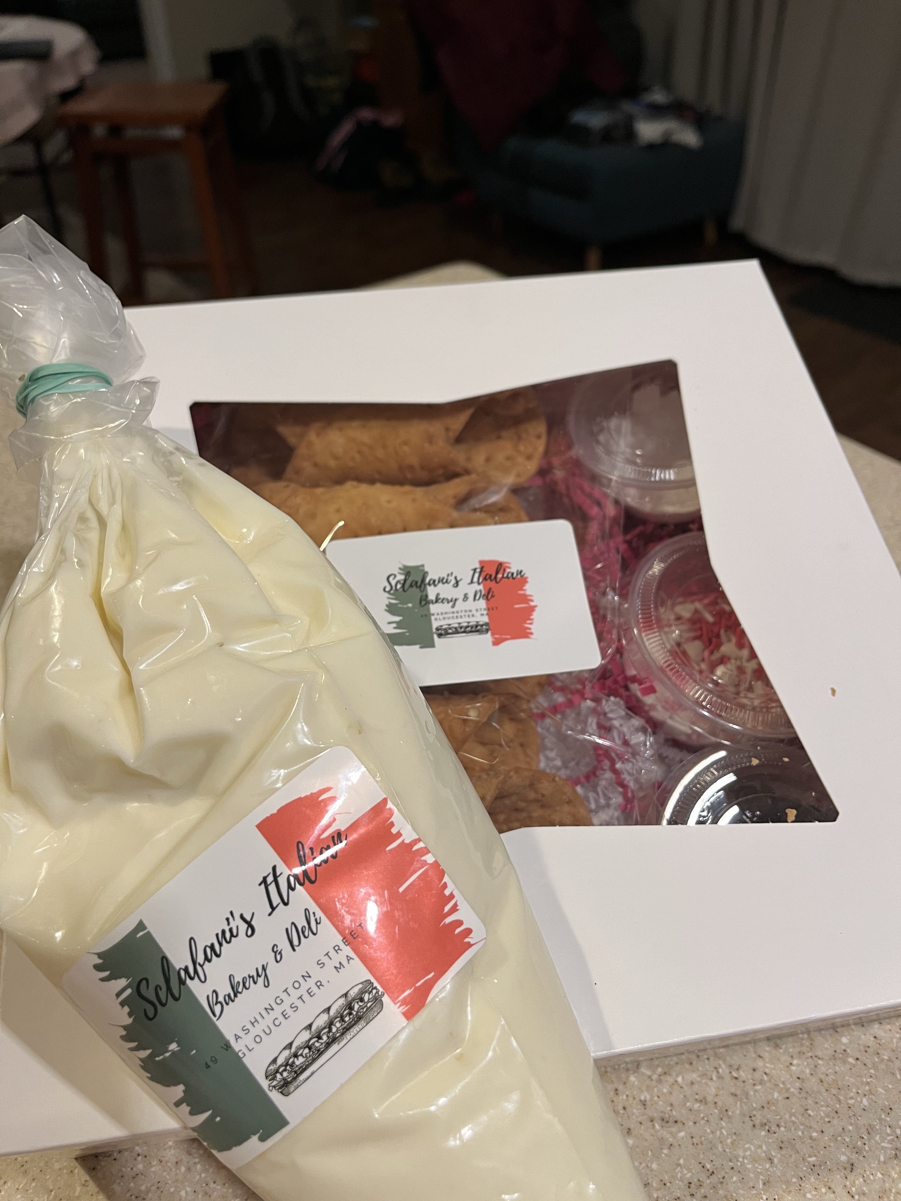 Thank you Sclafanis (Washington St) for offering DIY cannoli kits! Even this Irish girl could make a passable plate of treats for Jim. Rachel Ray has nothing to worry about but I can easily assure anyone out there who might be intimidated that this kit made it super easy and fun. Not to mention delicious…….they are available at the store or by preorder in kits of 6 ($24) or 12 ($42).