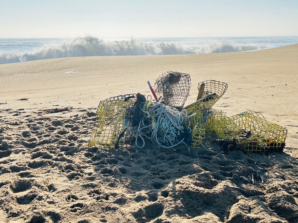 All washed up. It’s always sad for lobstermen to lose gear, but it sometimes makes for a pretty picture. Lots of little doggie footprints from pups who had been investigating the scene.