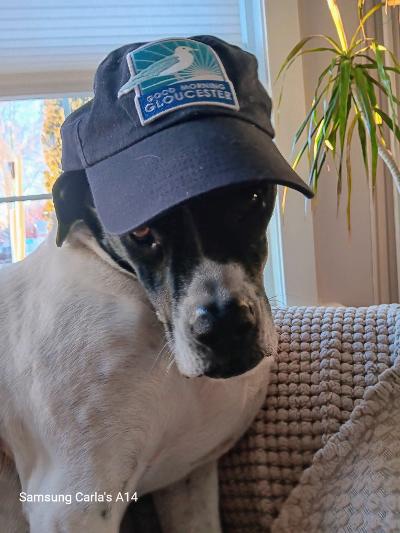 Carla Dellaporta: not a boat dog but Benjamin’s still trying to show GMG spirit!