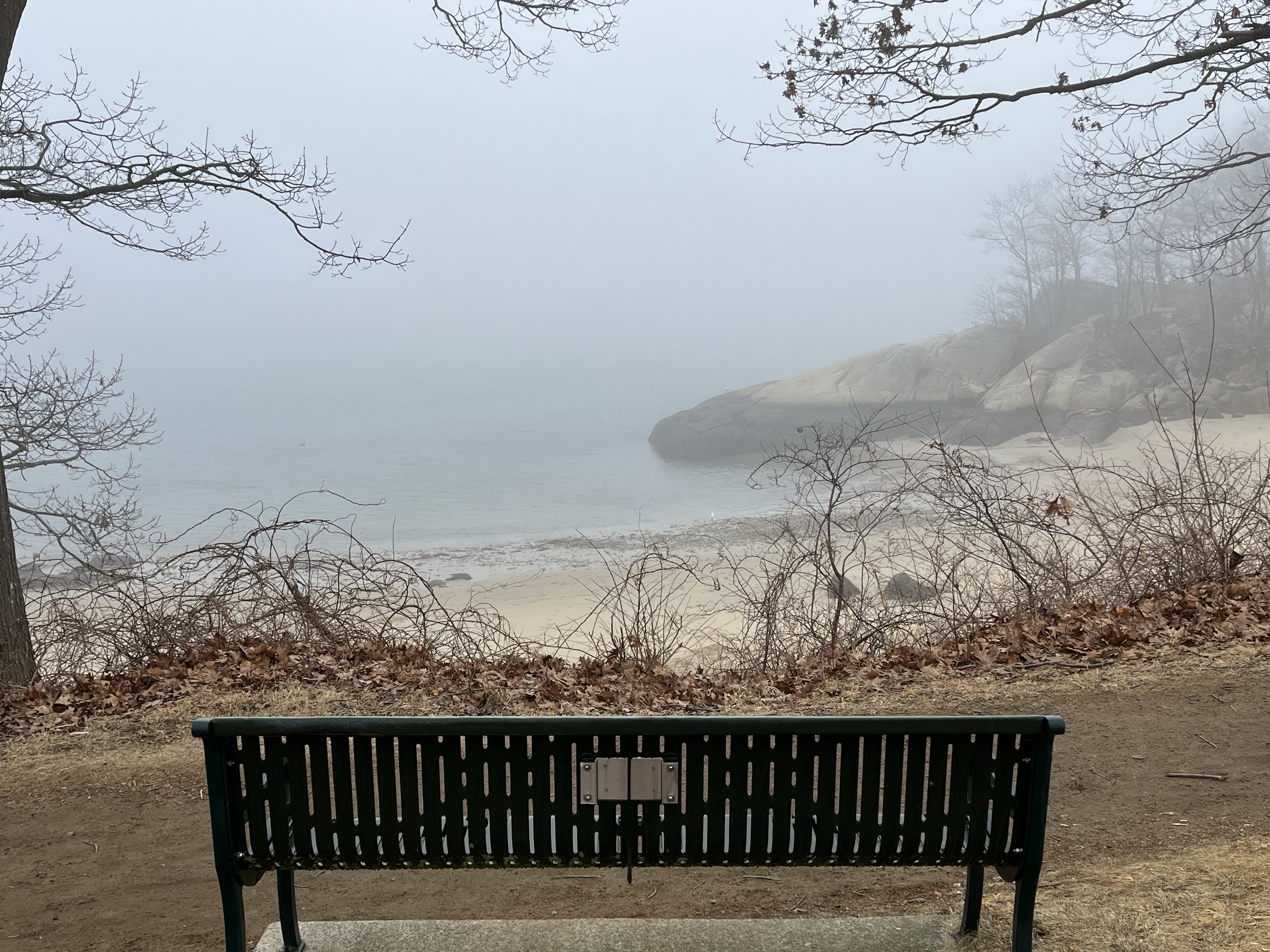It was a quiet morning amidst the fog yesterday morning at Stage Fort Park. Eerie yet a little bit like a comforting blanket. The tribute left to honor a birthday was especially poignant. Rest in peace Michael.