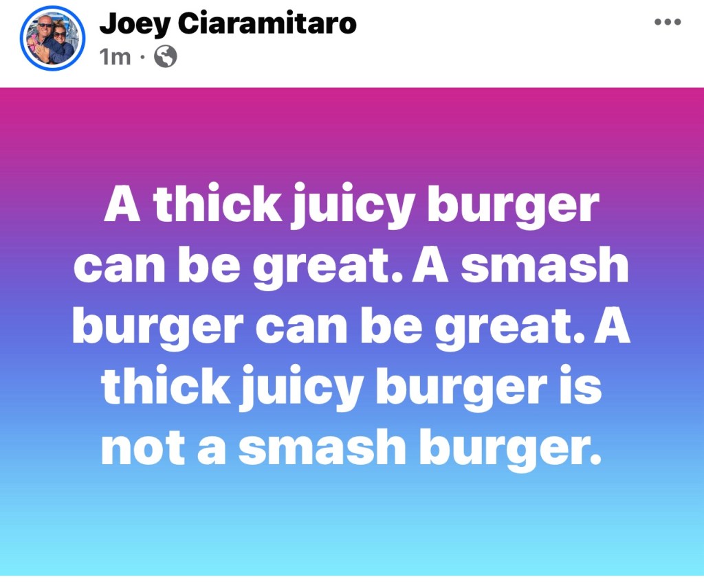 This is not a traditional hamburger contest (no slight to traditional hamburgers, they can be great) but a traditional fat hamburger is not a fuxking SMASH Burger.