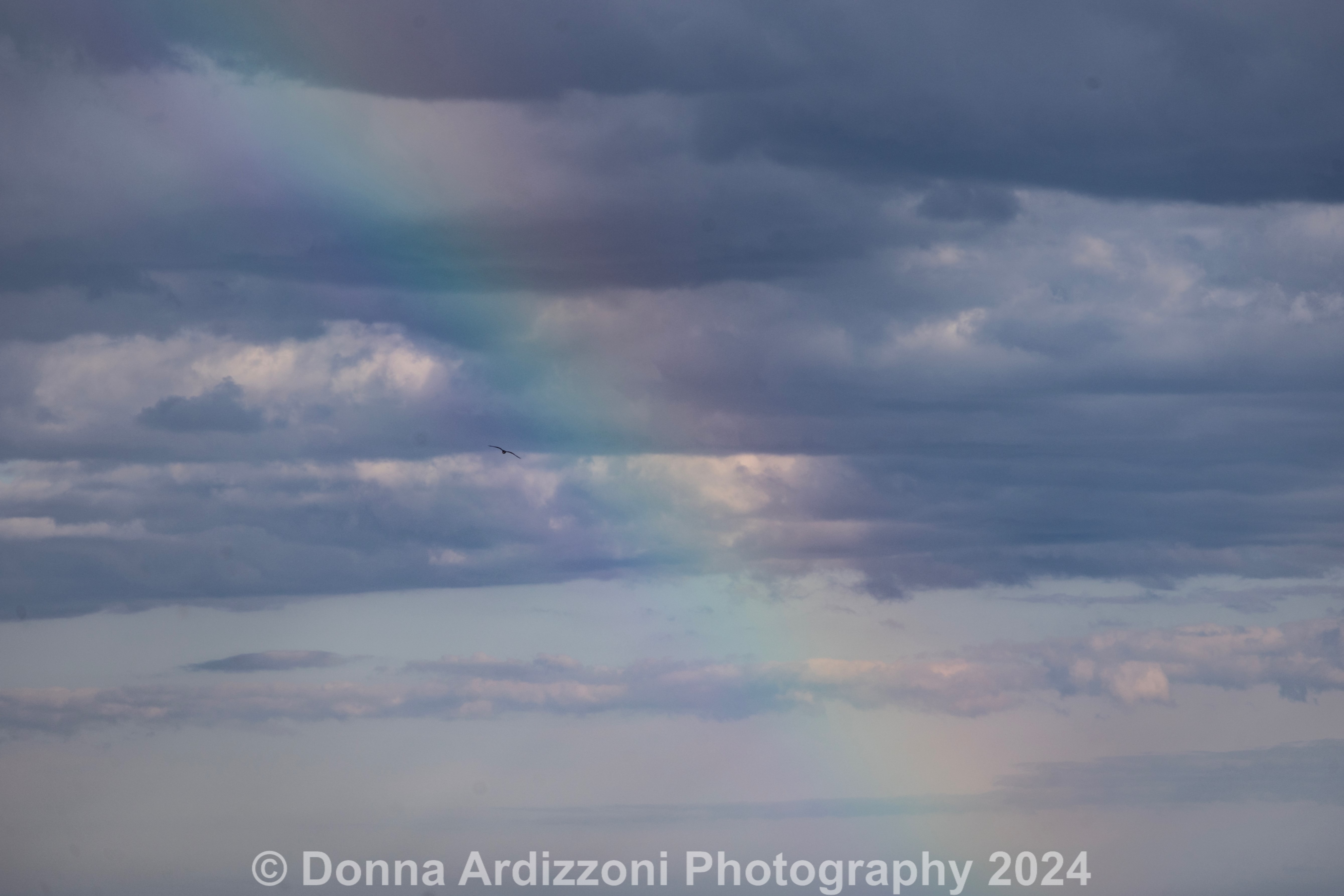On Sunday the weather went through many different weather patterns. We had rain, sun, clouds and sometimes it was raining and the sun out at the same time. On Shore Road, Sunday afternoon there was a faint rainbow. Love New England weather.