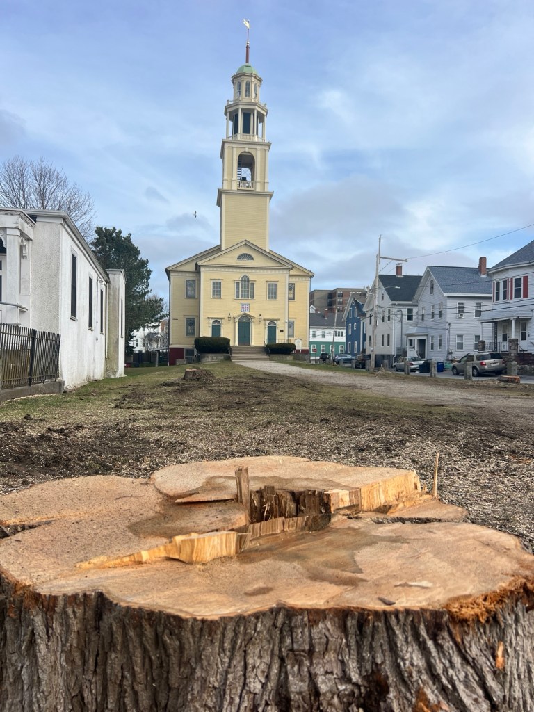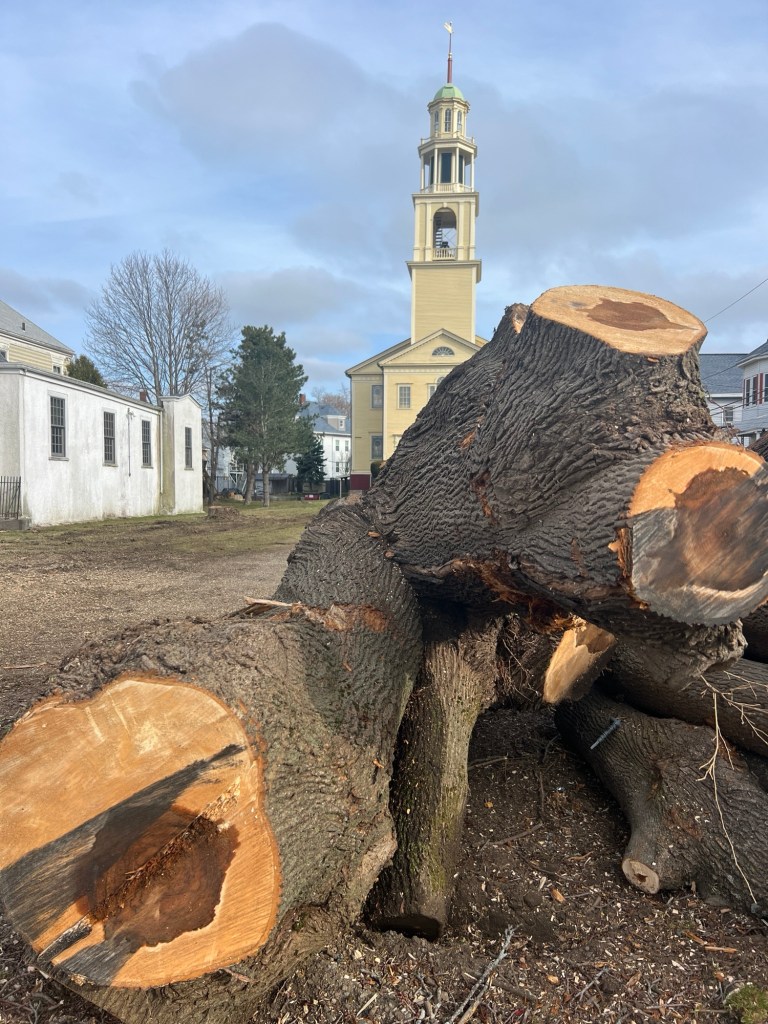 Hi All, This was actually a long-awaited happy day! The Norway Maples (an invasive species) were dying one by one and dropping limbs plus their exposed roots had become a safety hazard during our summer concert series. Two years ago the Meetinghouse Foundation received a CPA grant to completely restore the green with new disease-resistant Elms, a new lawn with a grid underneath for event parking, new walkways for safe access, soft uplighting on the trees, restored cast-iron tubular fencing between the granite pillars and a sprinkler/irrigation system to sustain the lawn and the Elms. This fall we received a matching grant from the Massachusetts Cultural Council, so the work could proceed this spring. The landscape designer and project manager is Doug Cook, principal of the firm Lansdesign on Main Street. Completion is due before the first Music on Meetinghouse Green concert on July 5th…a day we will really celebrate with the whole community. We will be planting Princeton Elms, which are highly disease-resistant, grow quickly and will form a beautiful cathedral-like canopy when mature, as shown in the old photos on the GMG page. We have about $25K left to raise and people may give an Elm in honor of, or in memory of somebody for $3K. There will be a bronze plaque for all the donors and supporting organizations.