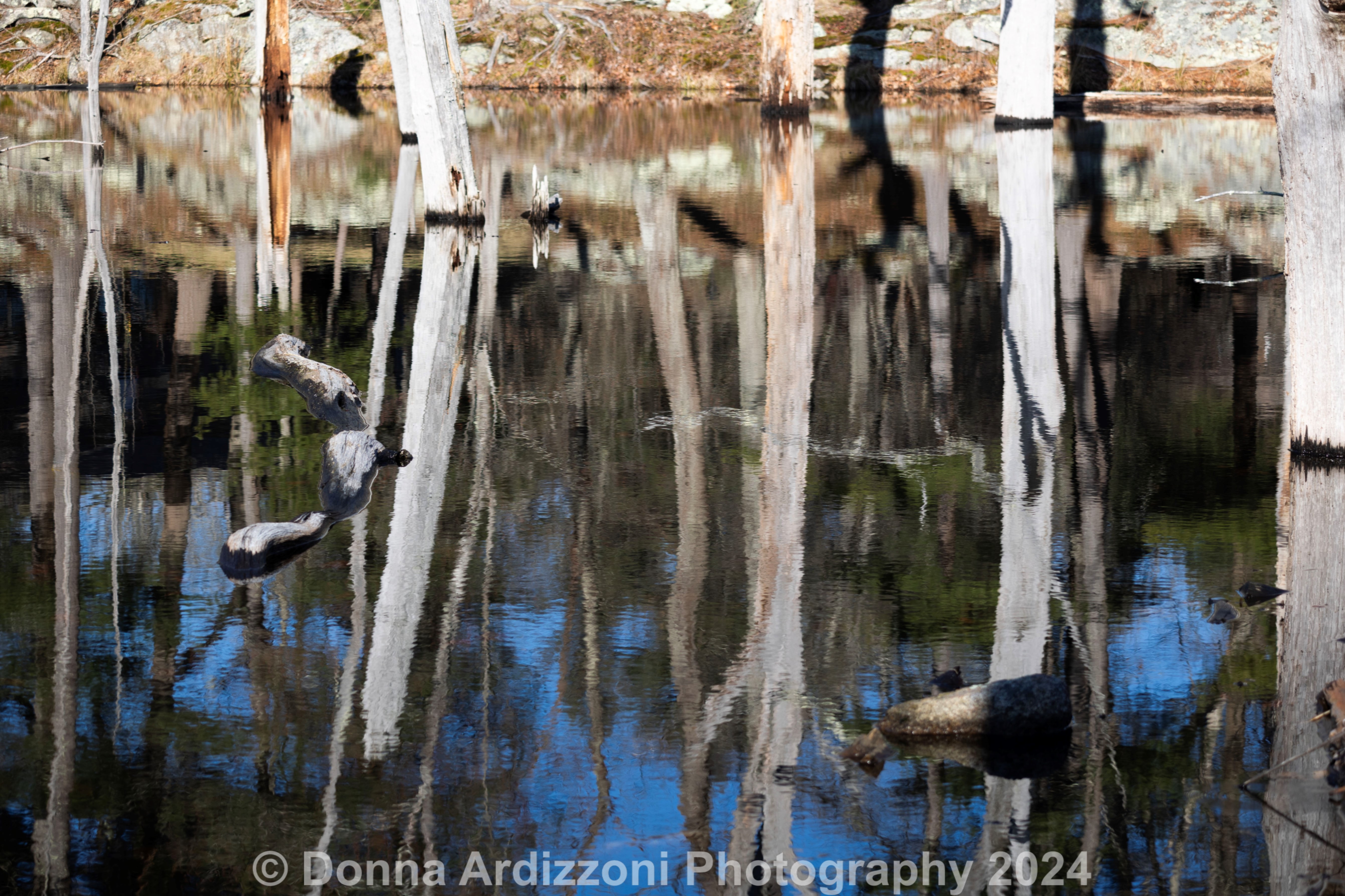 We were returning home and I noticed the bright red, pink and orange sky behind the trees across Buswell Pond. What a pretty sight!