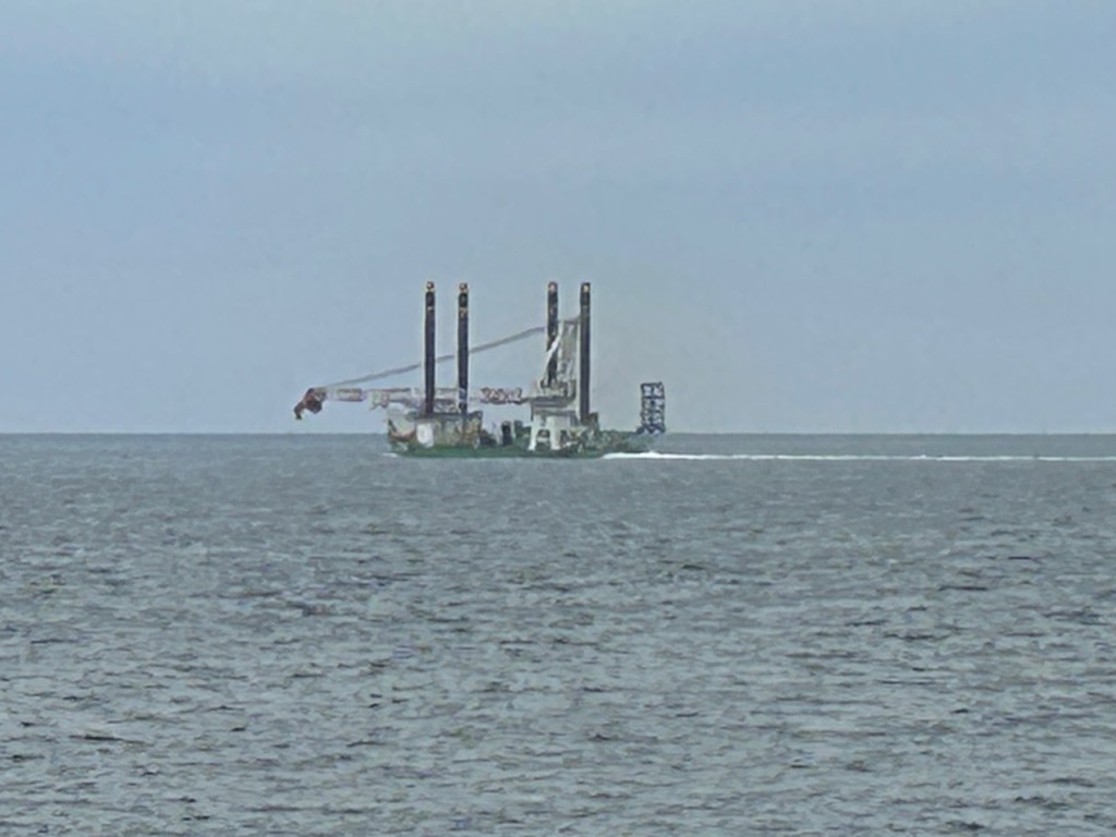 I don’t know much about this, but I’ve seen others posting photos this week. It passed by my window this morning. It reminds me of a water dwelling version of Mike Mulligan and the Steam Shovel.