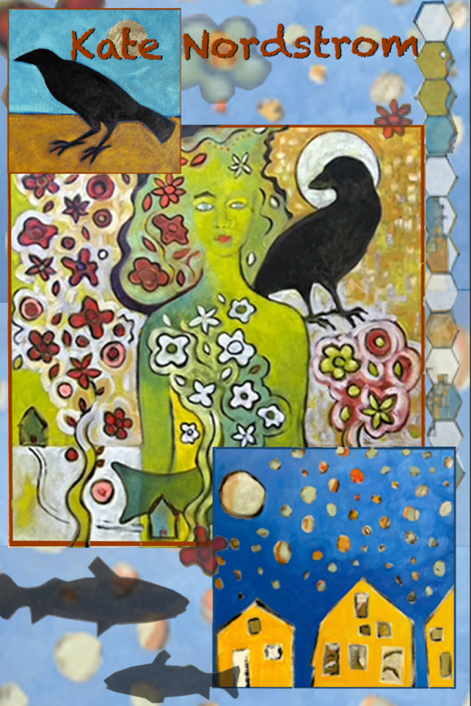 About the Artist: Kate Nordstrom is from mid-coast Maine, a place of varied landscapes and arresting beauty. She hascreated a vocabulary of familiar symbols which inhabit her work. When words fail to express her thoughts, they might manifest in her art.