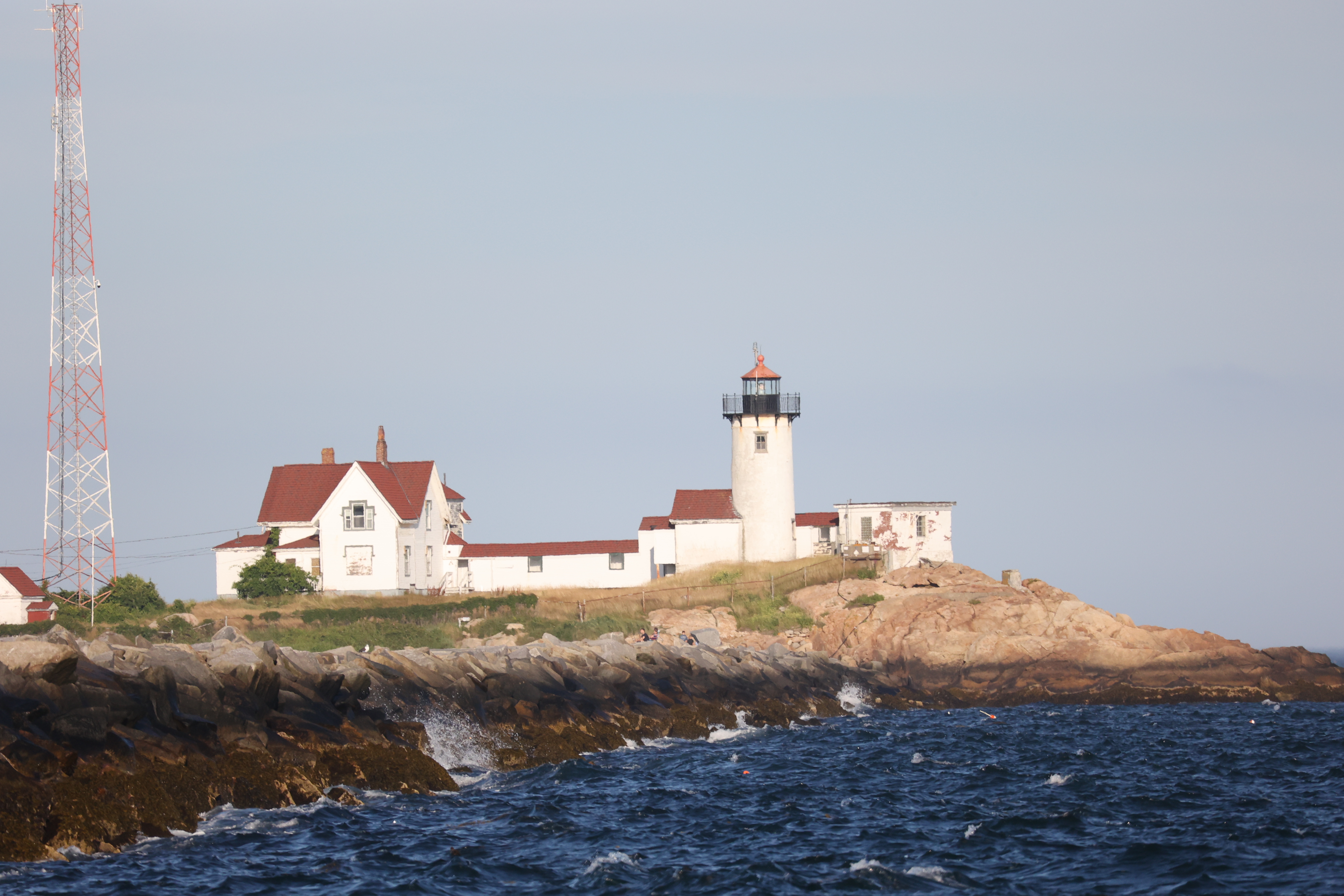We purchased Thacher Island Association Sunset Lighthouse Cruise tickets and went aboard the Privateer IV a few days ago to participate. The boat was full of enthusiastic lighthouse fans though it was a bit windy and choppy. Captain Jay, crew Natalie and Gabriel were great hosts and Marty provided informative narration as we toured the coast. The sunset was a bit of a disappointment but our lighthouses never disappoint. I have recently gotten a new camera lens and this trip was it’s first test. Here you see Ten Pound Island light, Easter Point Light, Thacher Island Twin lights, Annisquam and Straitsmouth. There’s another opportunity for this event Wed July 17 so check out availability if you are interested.