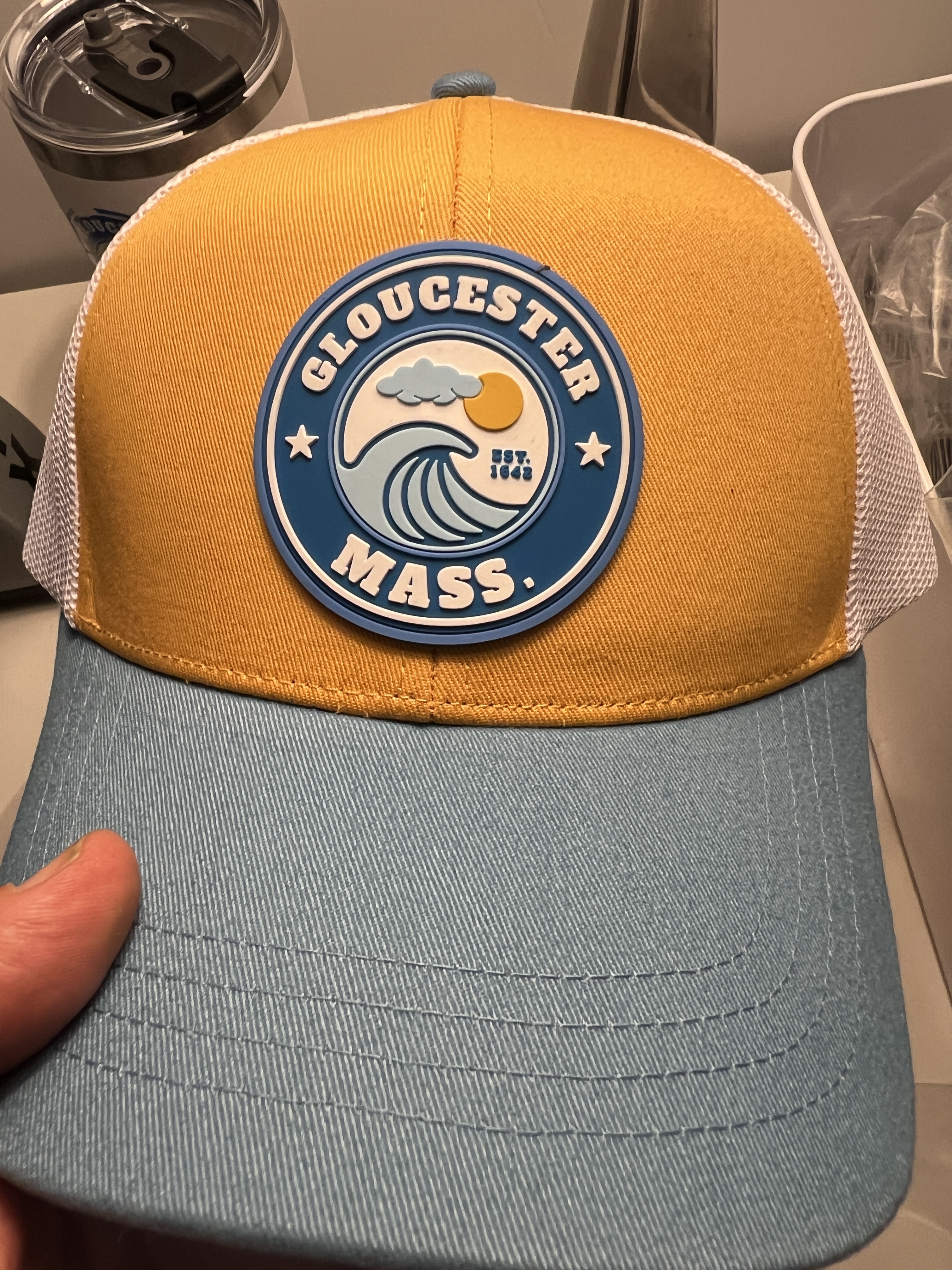 Yellow and Light Blue Gloucester Mass Wave Cap