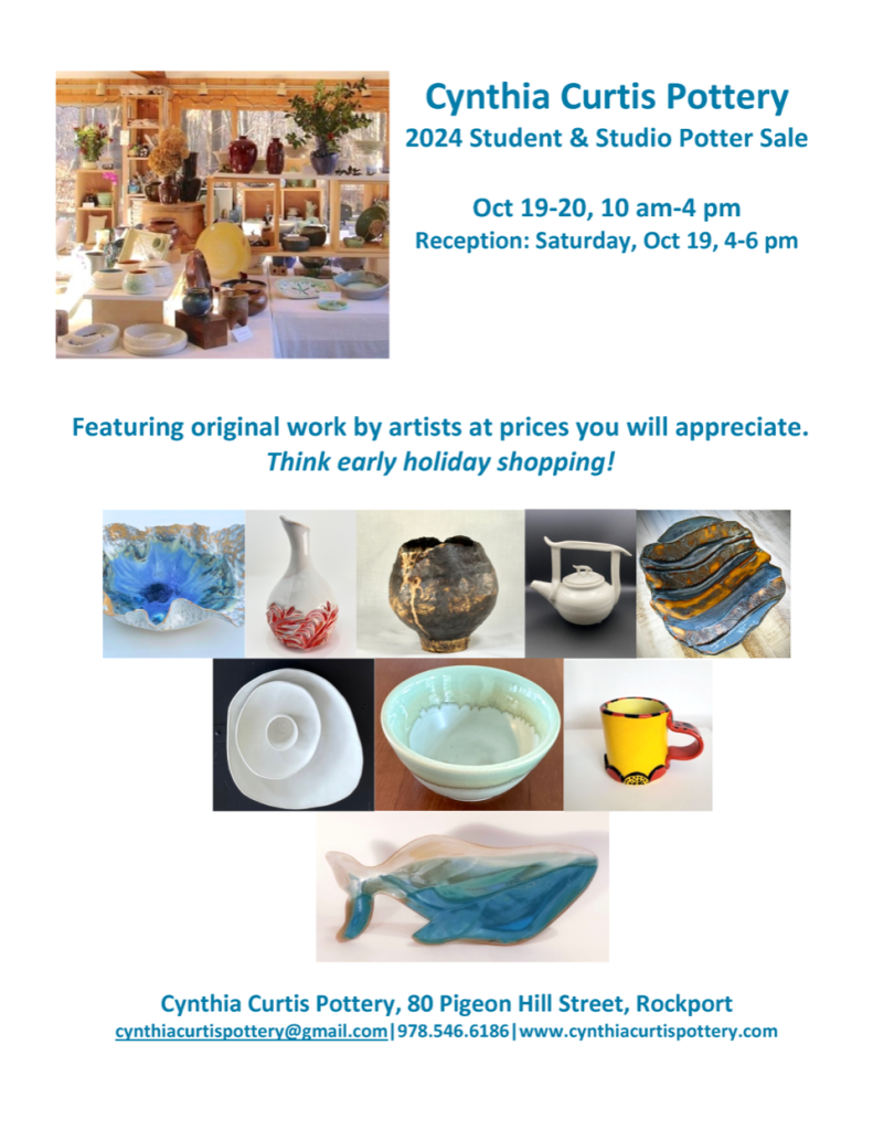 Over 1,500 folks have taken pottery lessons with Cynthia Curtis at her idyllic studio at 80 Pigeon Hill Street in Rockport since she opened it 25 years ago.