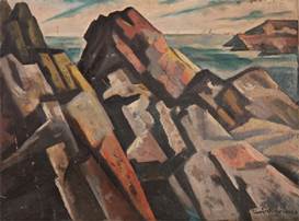 While Cape Ann’s art colony of the mid-20th century was best known for the traditional seascapes and landscapes created by artists such as Emile Gruppé, Frederick Mulhaupt and W. Lester Stevens, there was a group of more progressive men and women working in the area at the time and foremost among them for nearly 20 years was Umberto Romano (1905-1982).