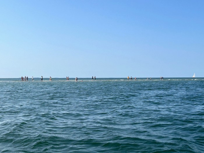 The sandbar that extends out from Wingaersheek Beach into Ipswich Bay is pretty phenomenal. It has been years since I have walked on it, but it always surprises me just how far it extends into the bay as I go by on boats. It also serves as a great example of why boaters need to know how to navigate properly as running aground there could be quite easy. Likewise, for beachgoers, knowing when the tide is rising and when to head back to dry sand is important too. Monday morning public service announcement.