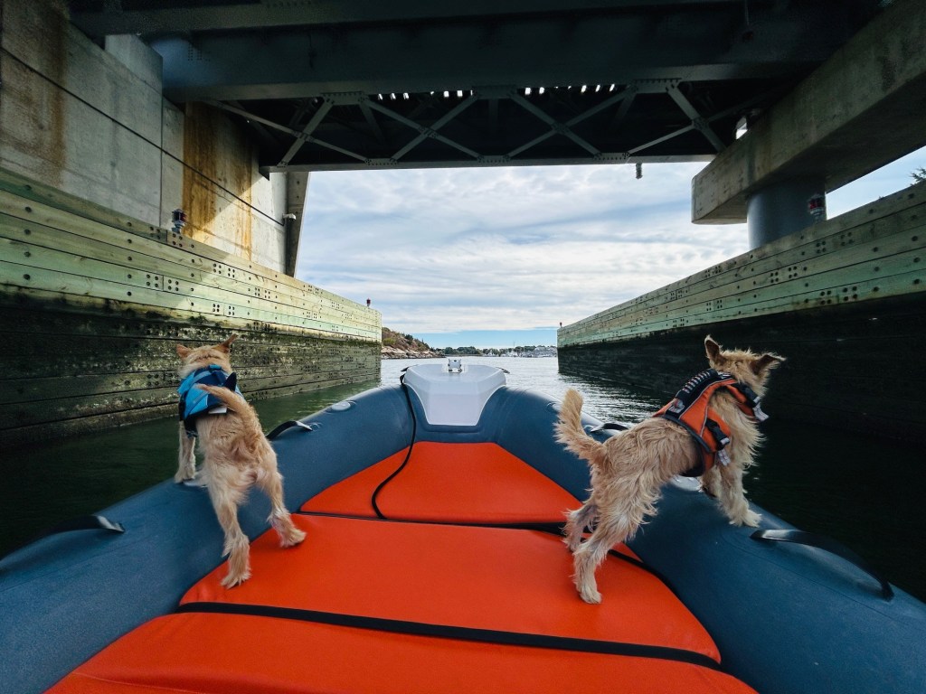 First Mates. This chapter in “The Adventures of Hazel and Mako”. They are super helpful while out on Hazel’s boat! Here they are making sure Captain Chris navigates under the train bridge safely.