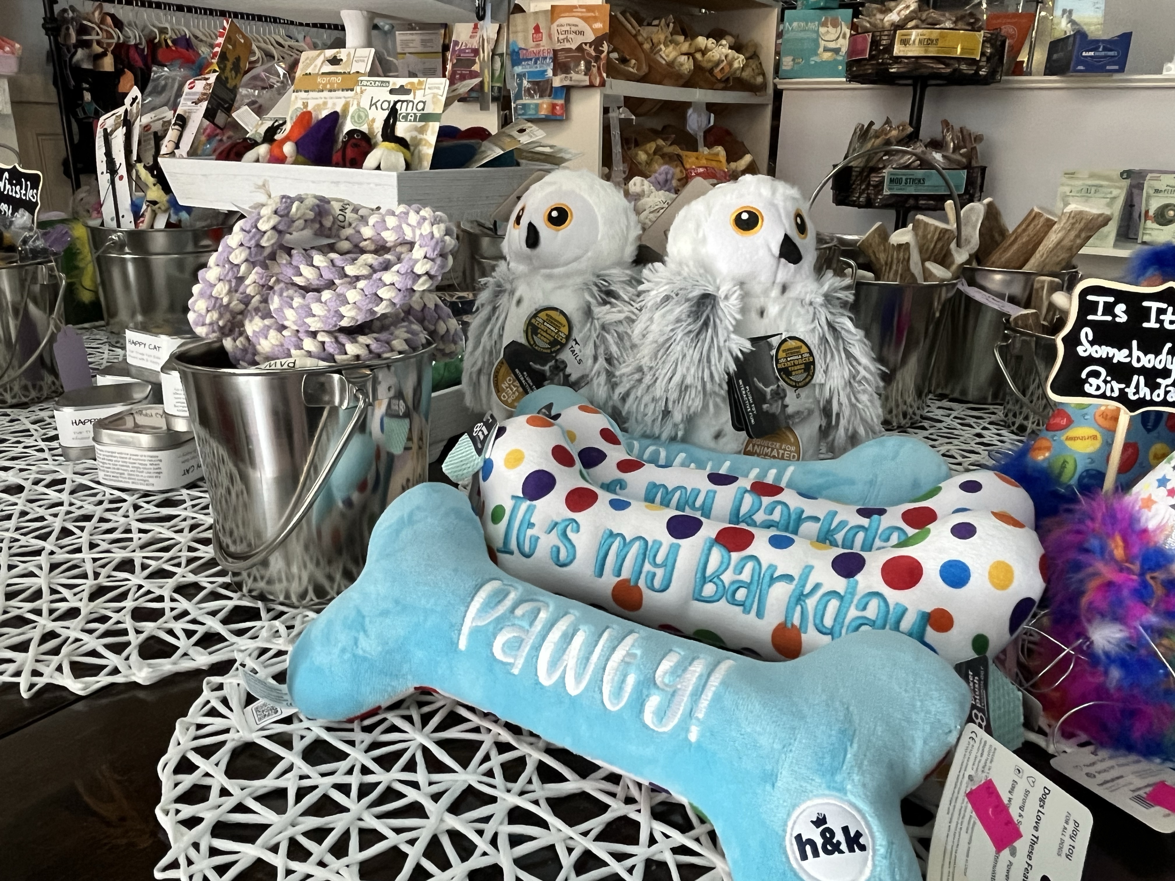 The Happy Tails Shoppe at 186 Main St was recently opened by Lauren so I stopped by to check it out. And you should too especially if you have any dog or cat lovers in your life. It’s a bright space jam packed with all manner of pet necessities and accessories. So many cool items to browse, it’s hard to know where to look at first. Lauren is gracious and helpful. Stop by and welcome the shop to Main Street!