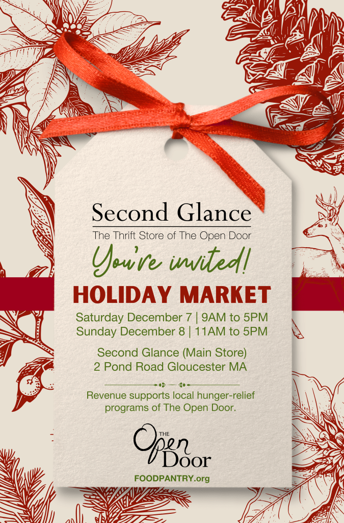 WHAT: SHOP the Holiday Market at Second Glance, Thrift Store of The Open Door, for high-quality, second-hand goods and one-of-a-kind finds for the holidays. Revenue at Second Glance supports hunger-relief programs of The Open Door.
