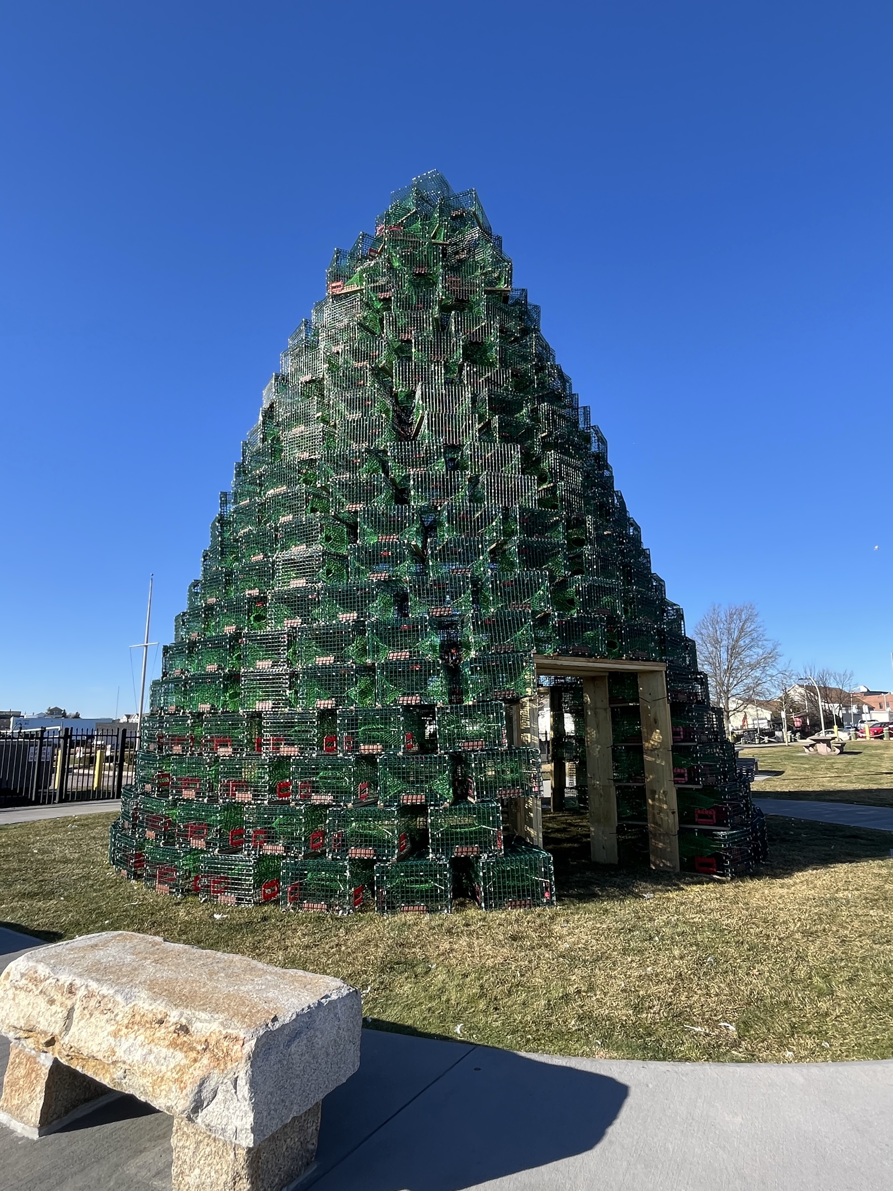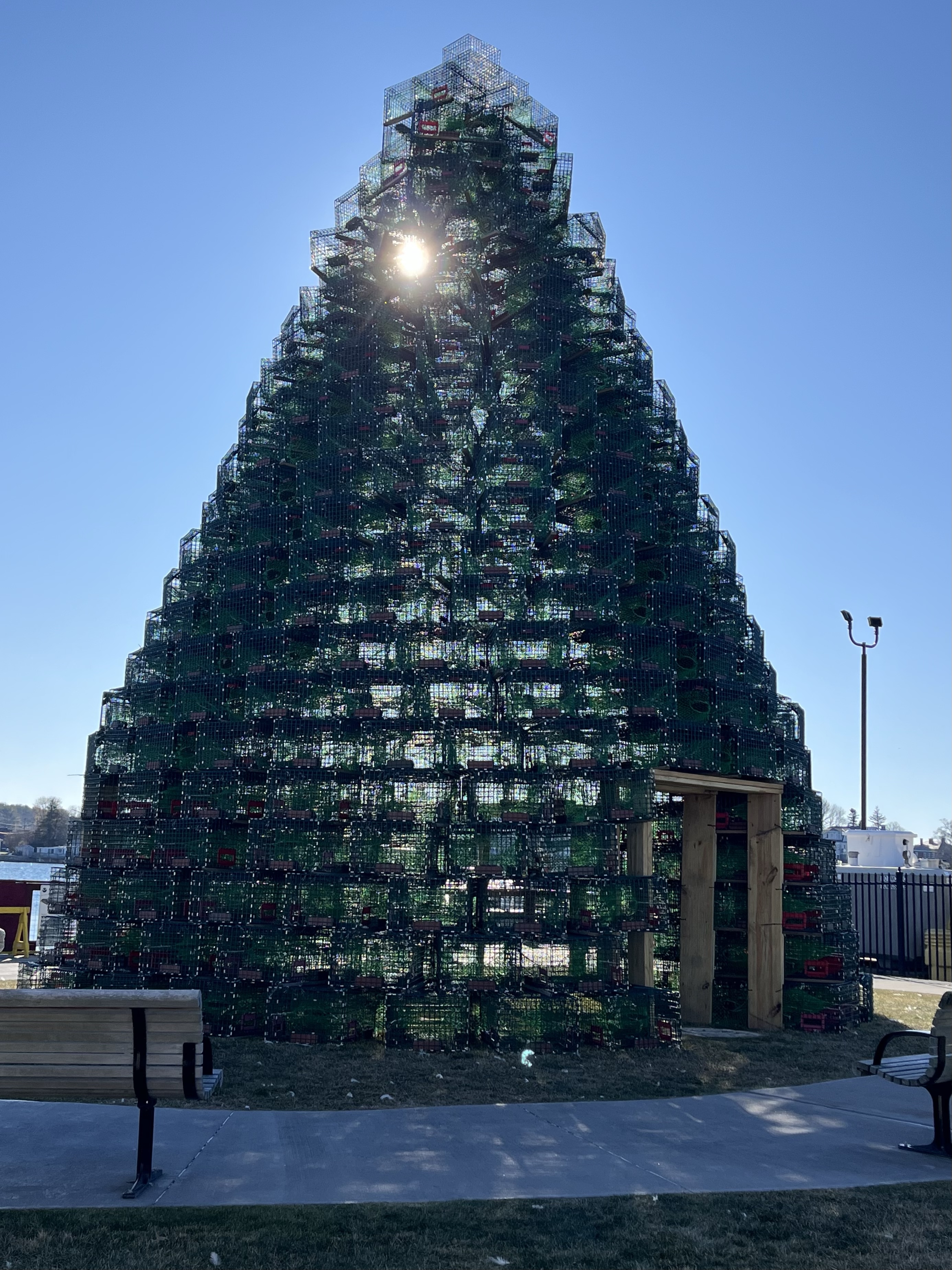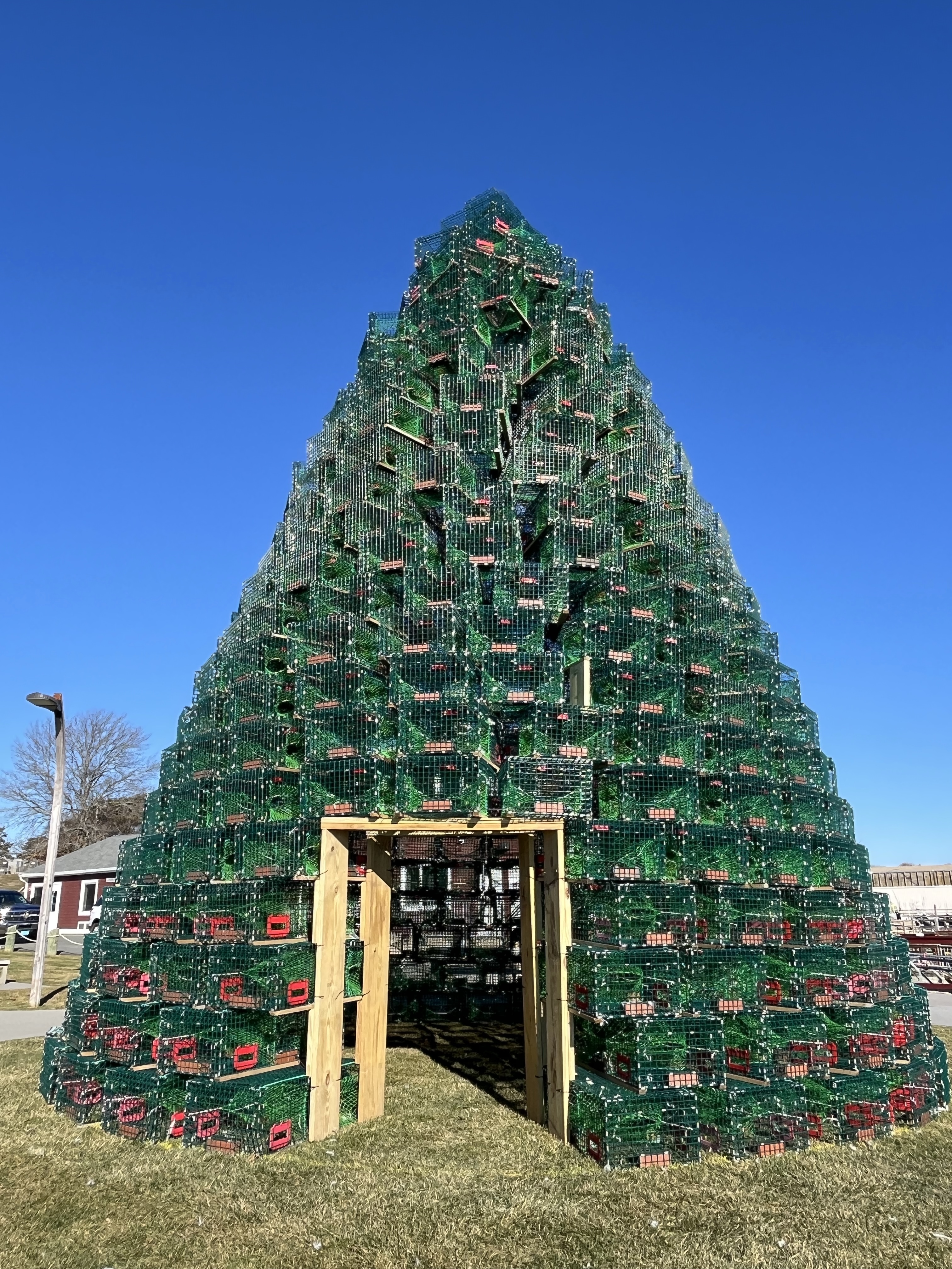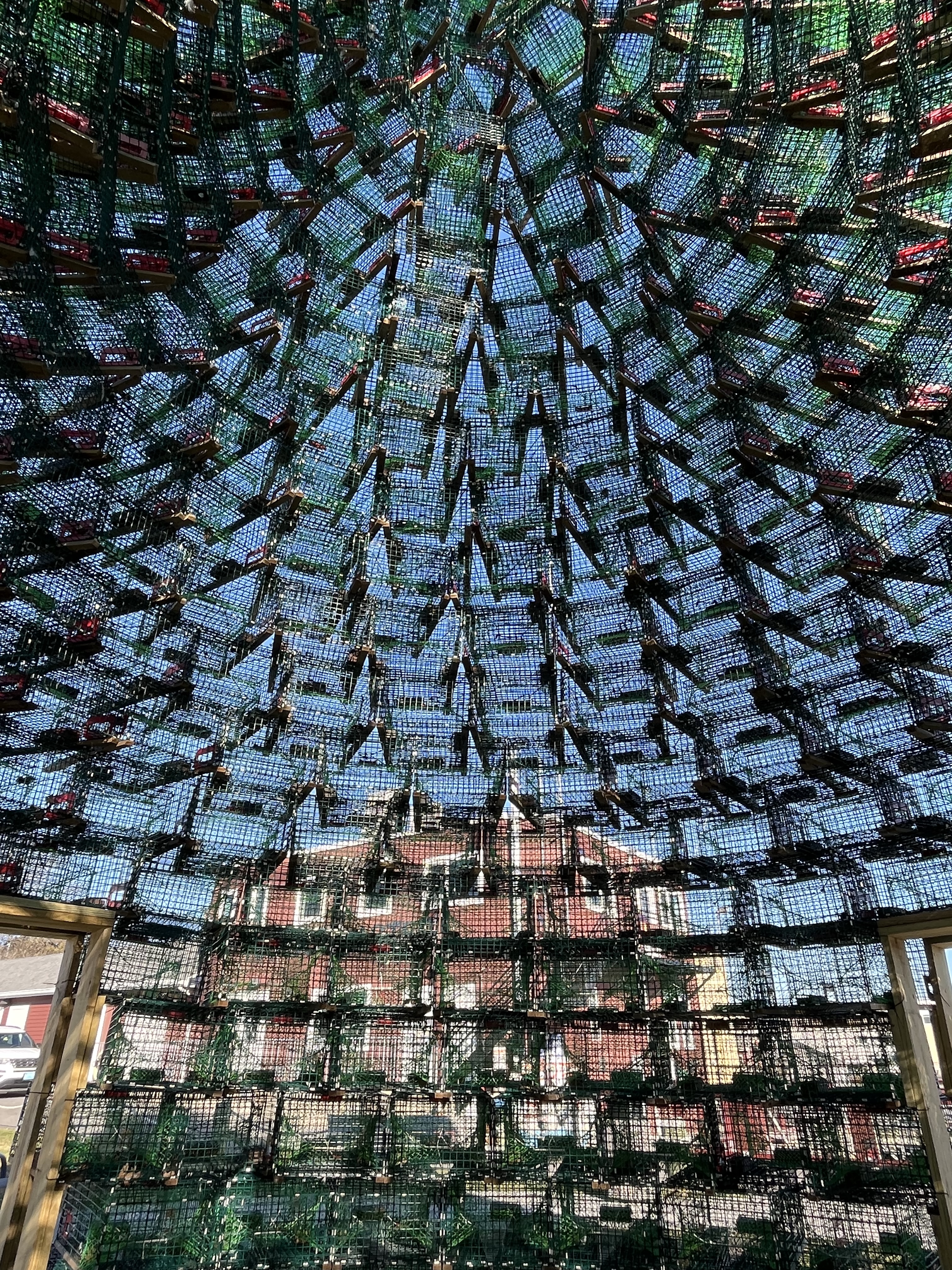 Here’s a sneak preview of our beautiful Lobster Trap Tree awaiting its accessories in preparation for Deck the Docks Sat Dec 14. Hope to see you there. She’s looking good!