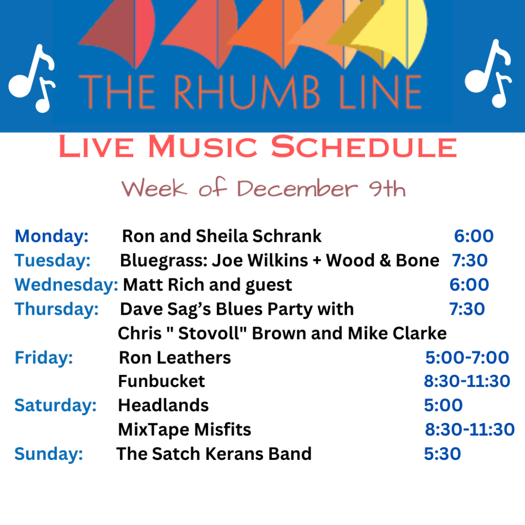 Here is this week’s music line up at The Rhumb Line. As always, live music 7 days per week! See you there!