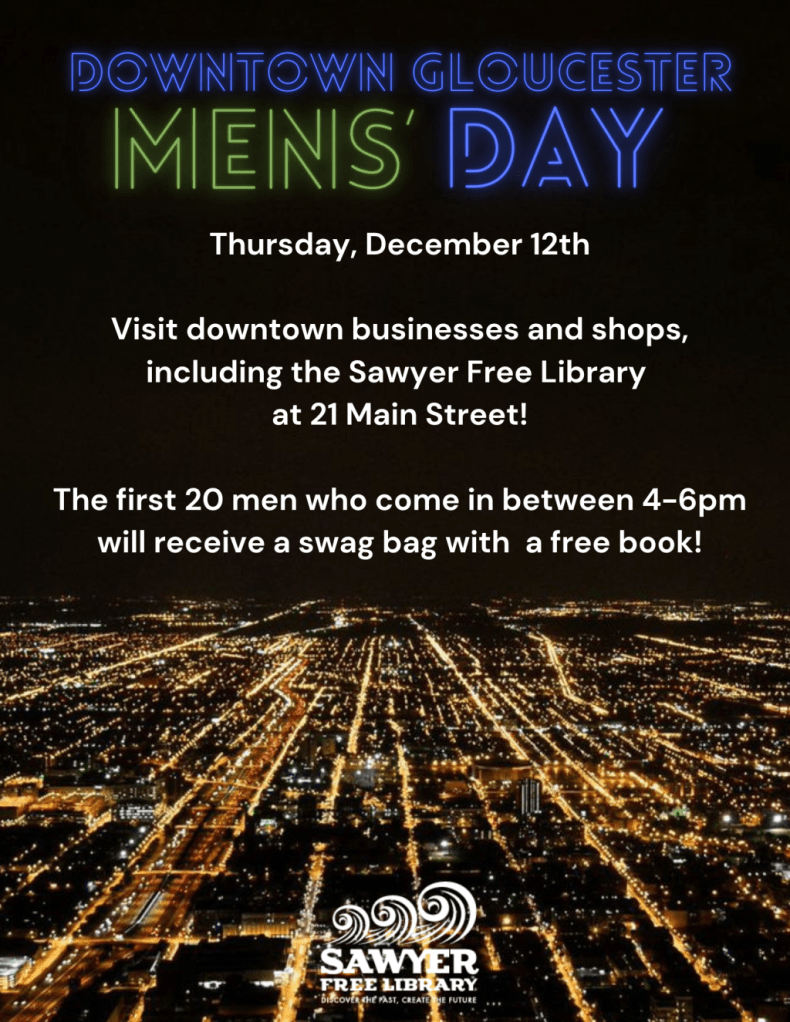 Downtown Gloucester Men’s Day is Thursday – be sure to stop by the Sawyer Free Library!