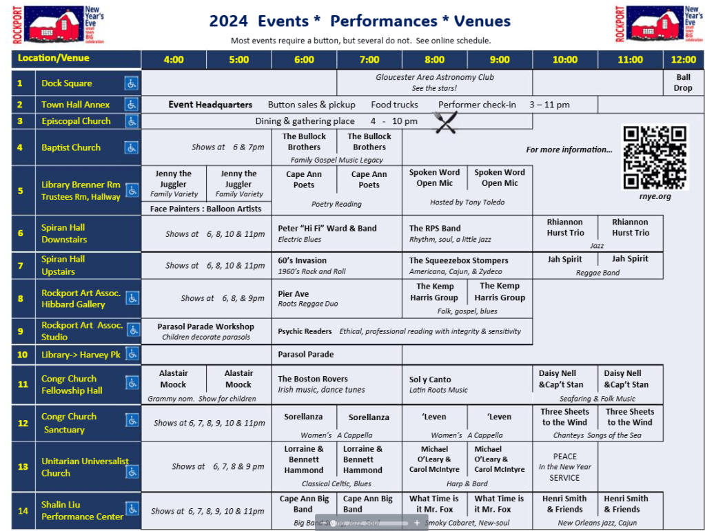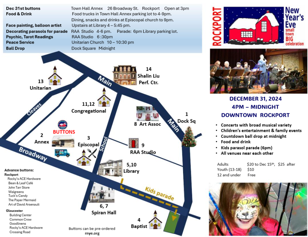 The New Year’s Eve planning committee in Rockport would greatly appreciate any way you can help publicize our forthcoming New Year’s Eve festival around the Cape Ann communities! Attached is a release describing Rockport’s New Year’s Eve 2024. Also attached is the pre-event program guide, which is tri-fold in print.