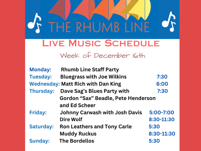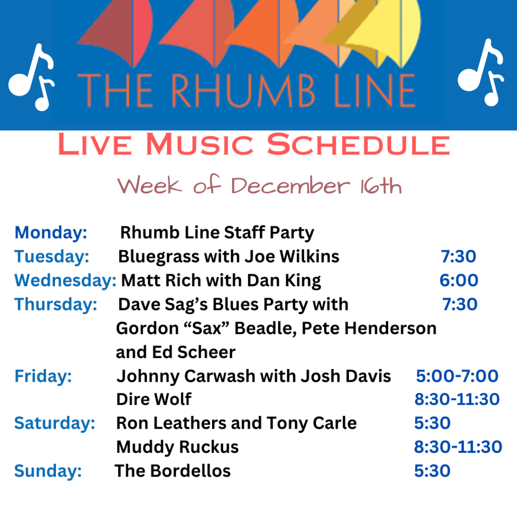 Here’s this week’s line up at the Rhumb Line. See you there!
