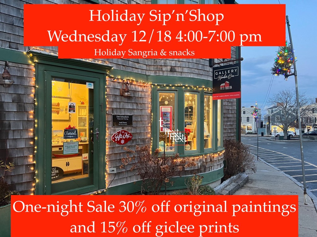 Come Sip, Snack and Shop at the gallery and enjoy our deepest discount on original artwork of the year! 30% off one night only! Also shop prints at 15% off. We have beautiful Gifts of Art by local artists and makers, hope you’ll join us for a fun night of shopping!