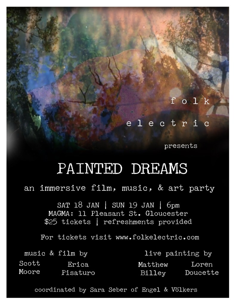 PAINTED DREAMS is an immersive film, music, & art party! Musicians, Scott Moore @trickycricket and Erica Pisaturo @erica.pisaturo will play some live music & share a one-hour album-in-progress along with experimental film accompaniment. The wildly creative artists @matthew_billey_artwork and @lorendoucette will paint live, translating music to canvas. Refreshments will be provided. Event coordination by Sara Seber @saraseber_realestate.