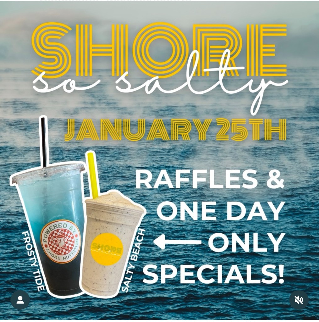 Raffle + One day only Special Drinks (Frosty Tide, Salty Beach) at Shore Nutrition, 139 Main St.