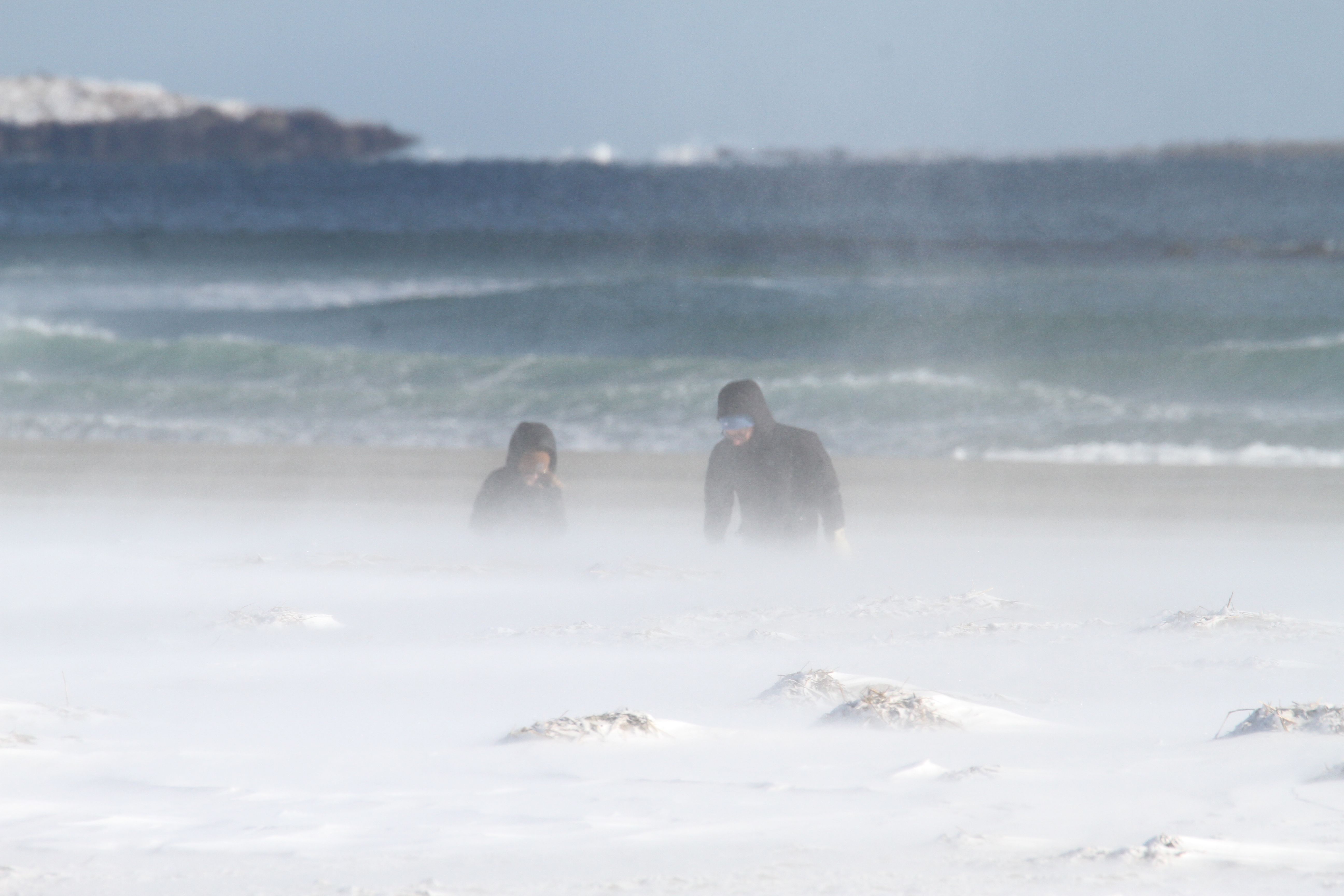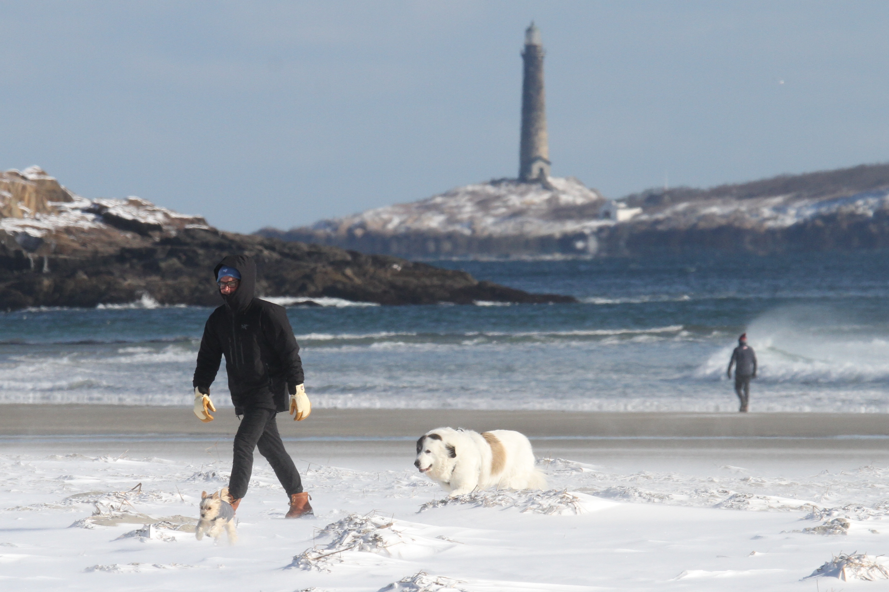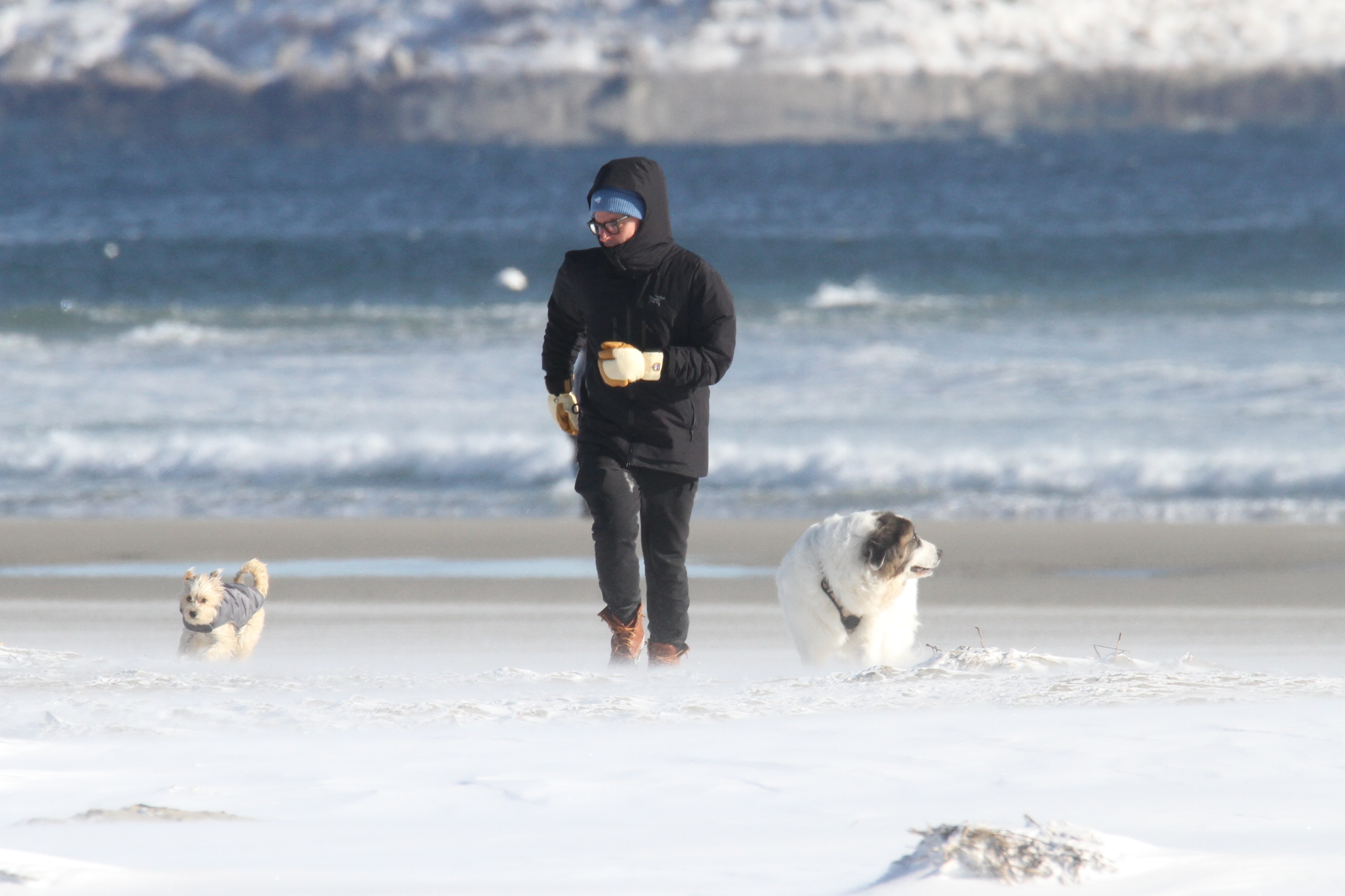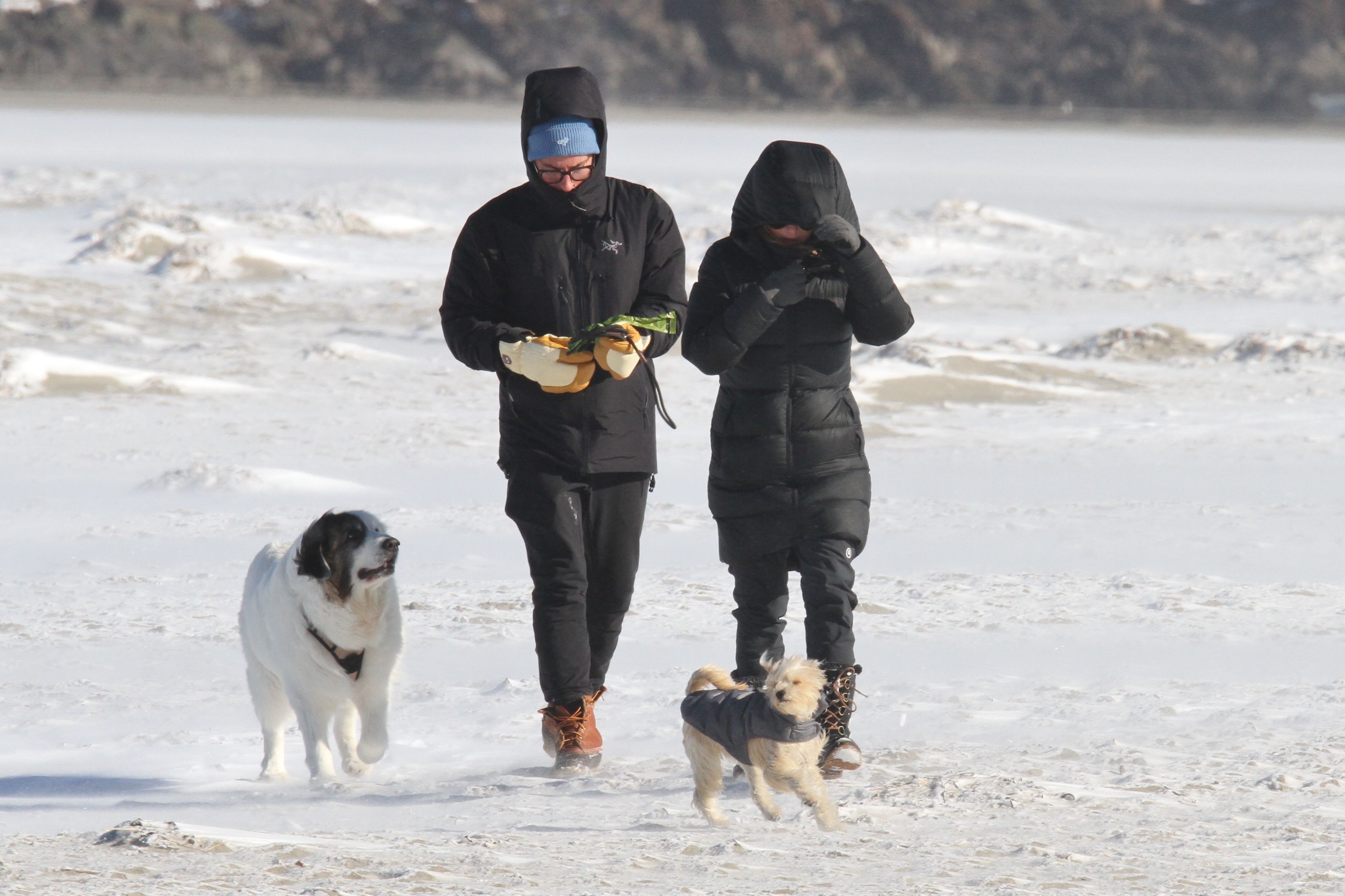 The things we do for our dogs……Chris and Jamie walking the dogs at blustery Good Harbor Beach. The post storm waves were pretty cool too.