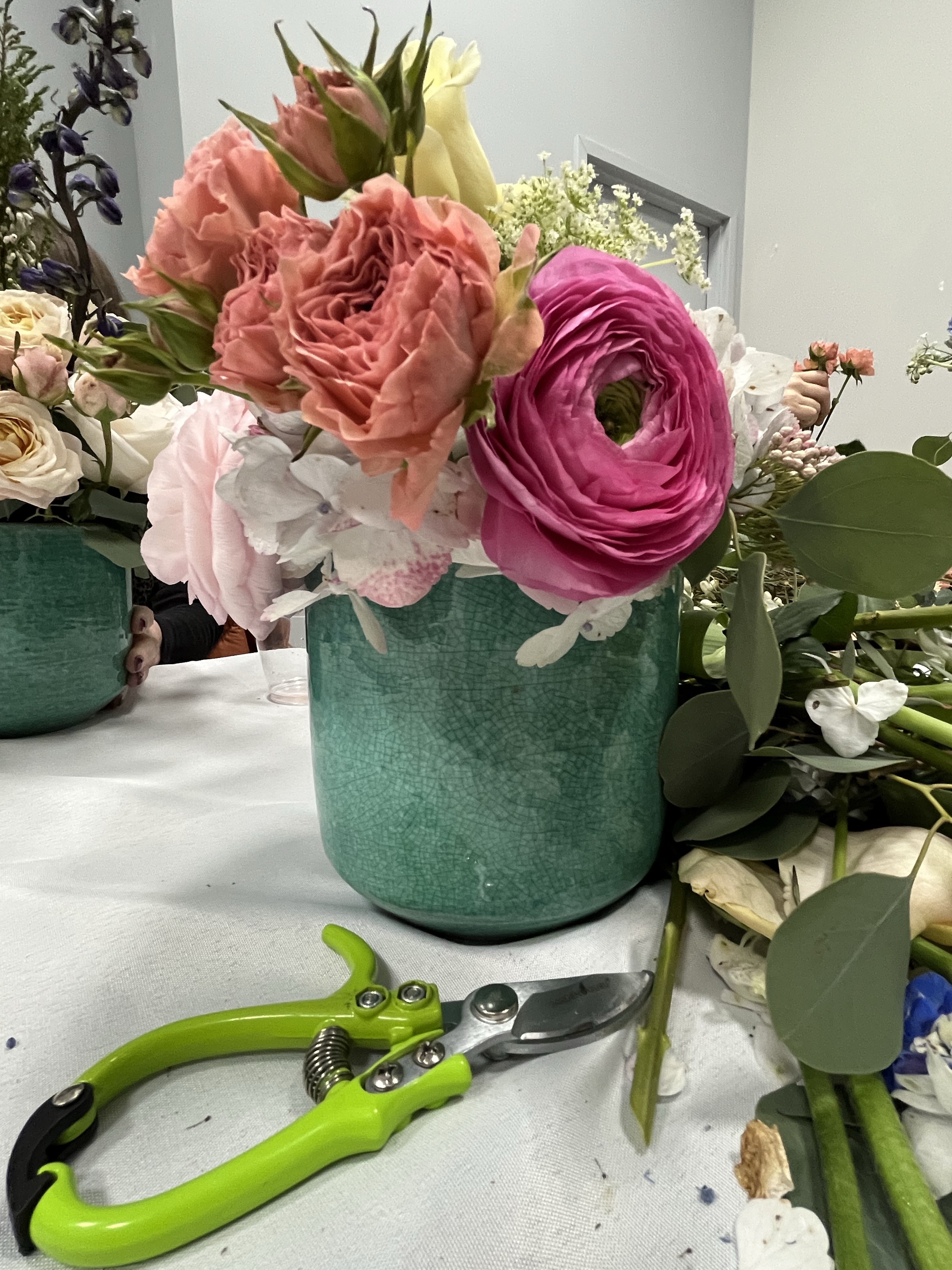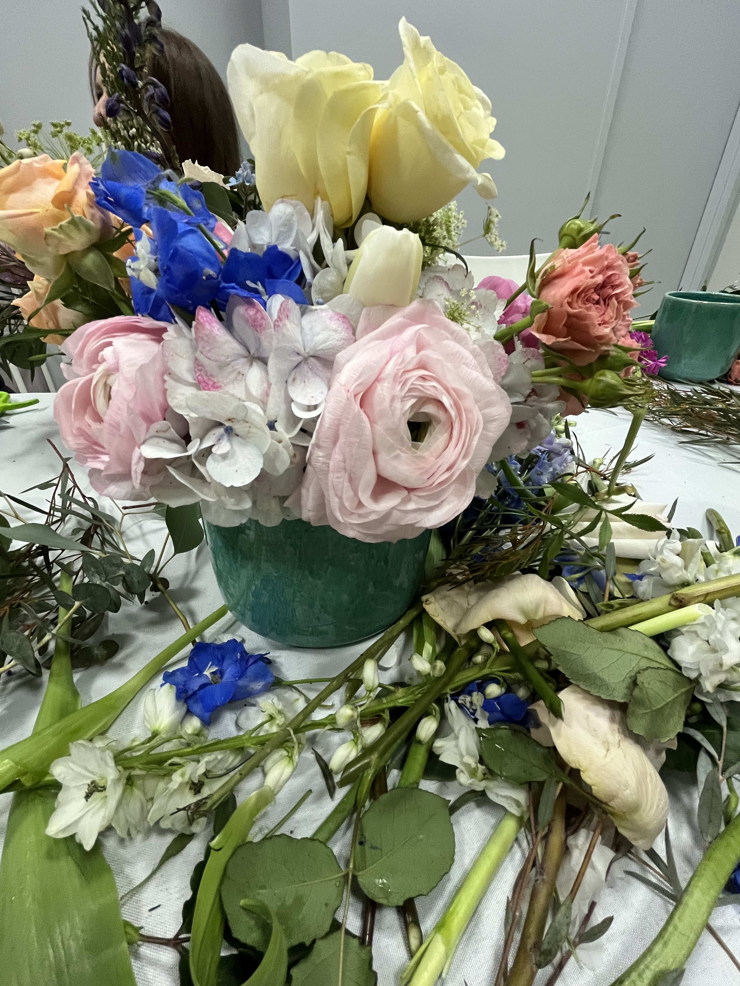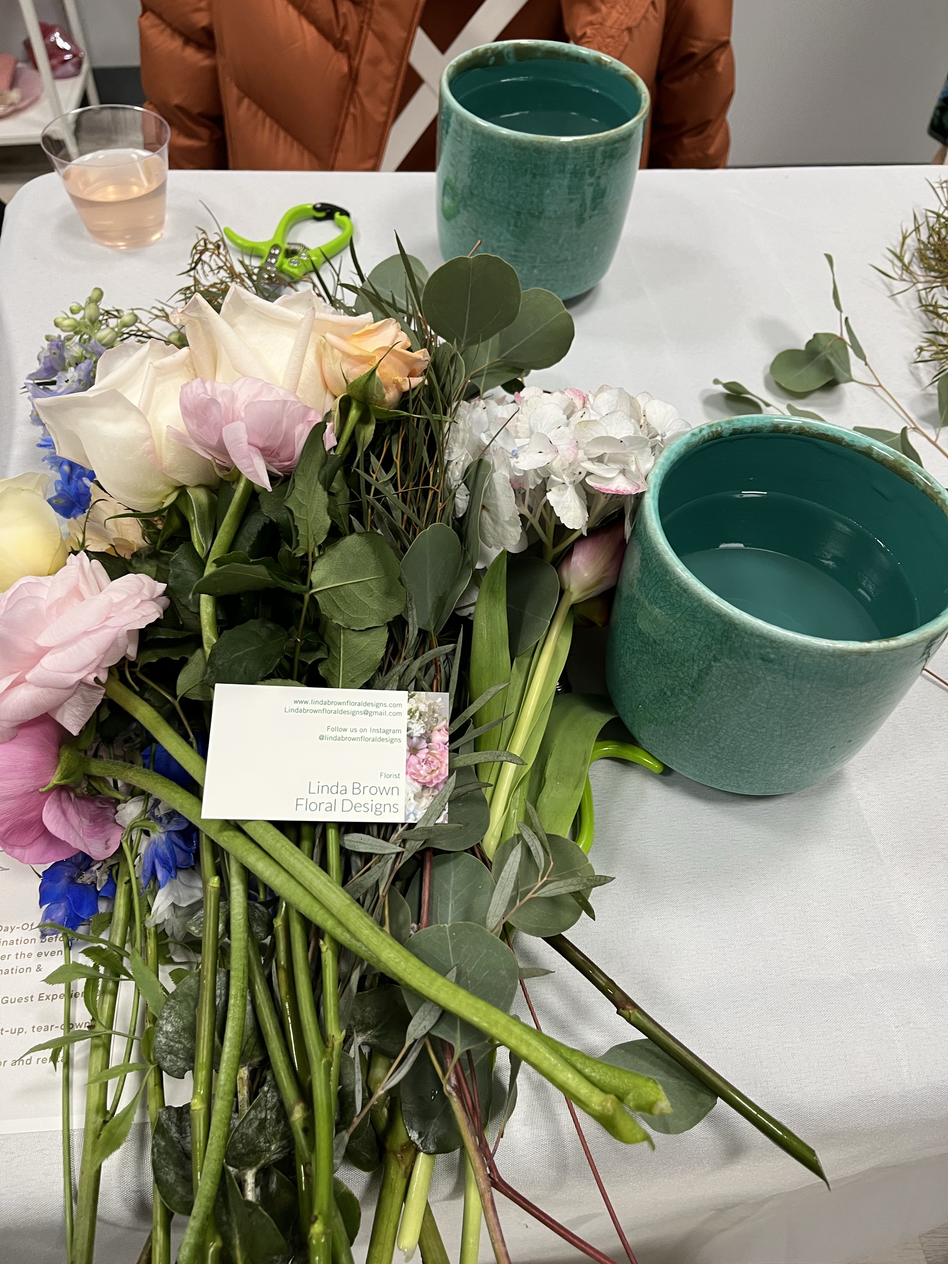 It’s worthwhile to note the class took place at Borrowed and Blue Collective at 206 Main St which is Britt Miller’s initiative. In addition to event planning, Britt is offering the space for events such as the floral design class. It’s a nice open, welcoming space for small gatherings.