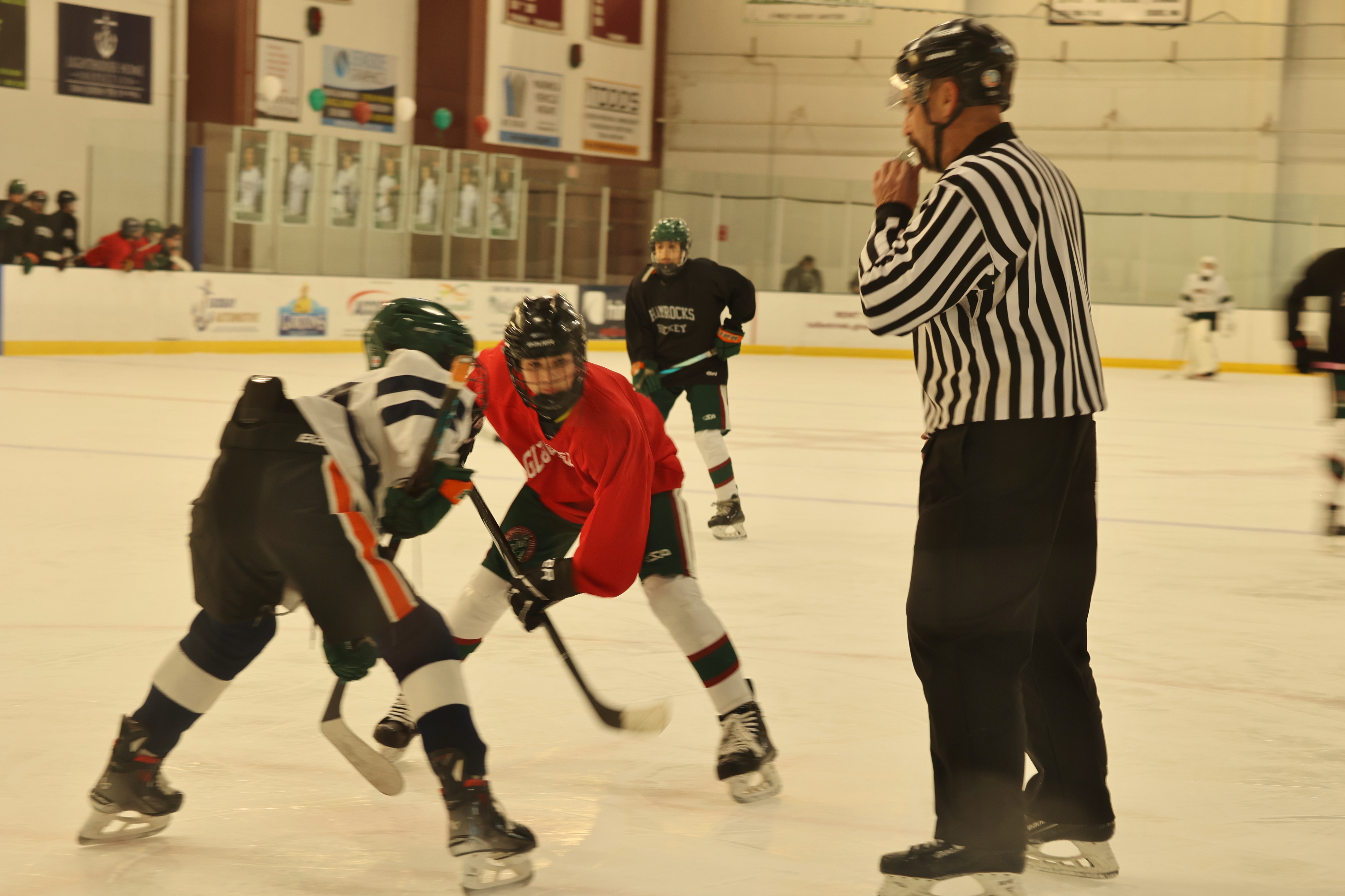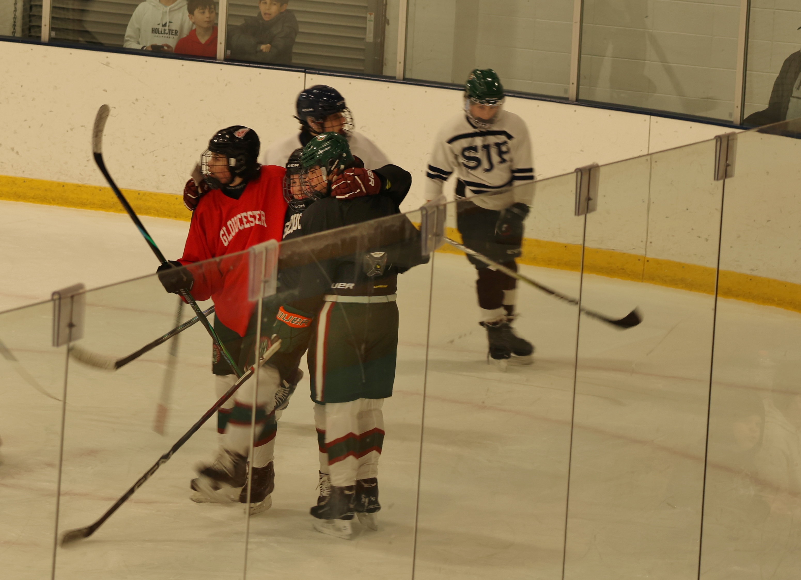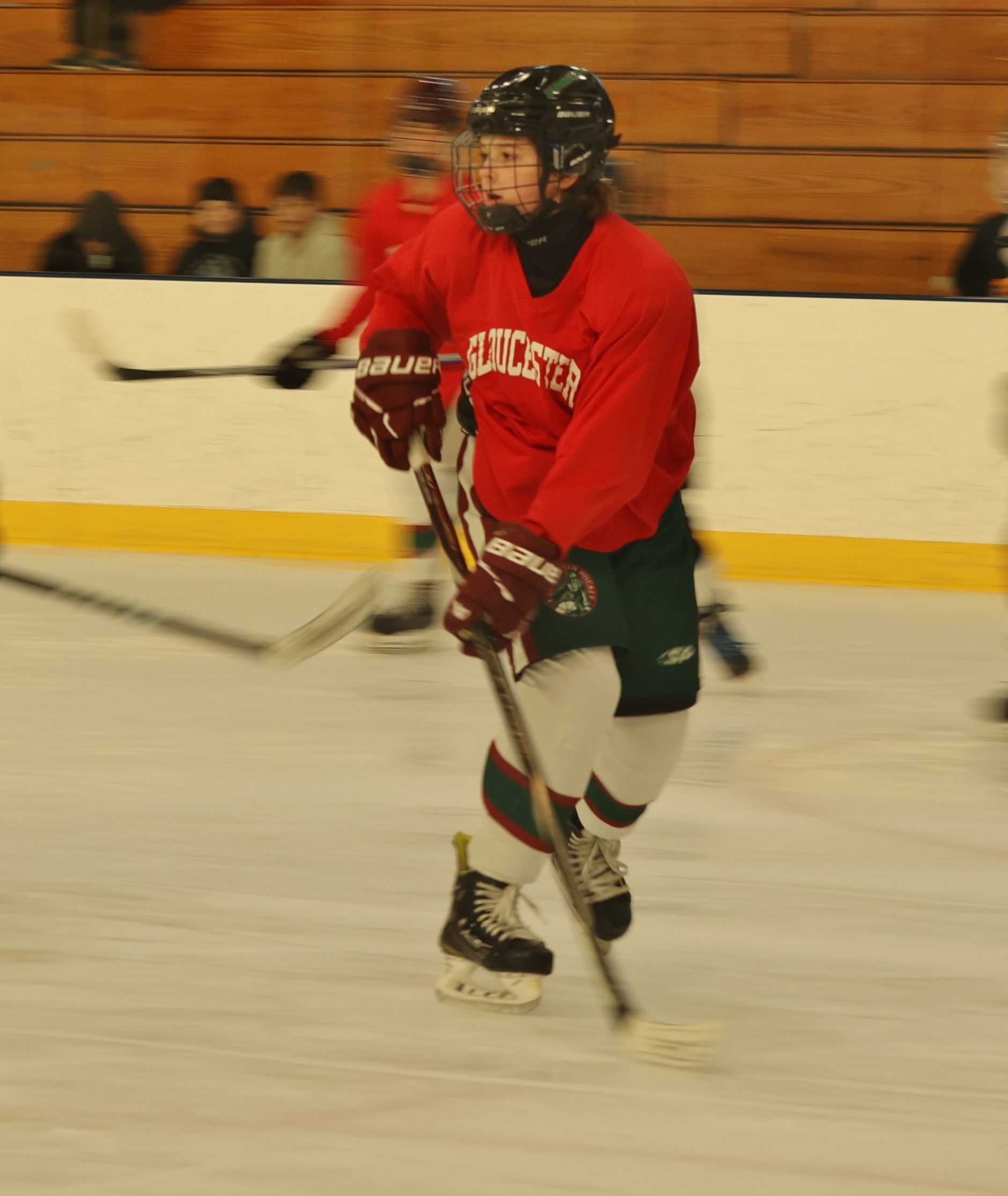 We attended a recent O’Maley Shamrocks Ice Hockey game recently to keep an eye on a couple of our favorite eighth grade players. It happened to be the game at which the 8th graders were recognized …there are 14 of them I believe so the impact for the future of the high school teams is significant. The team performed very well and although the lighting stinks, here’s a bit of a photo dump. Both teams started in white jerseys so the Gloucester team put on red or black jerseys in order to play. This made it difficult for me to try to make sure I got most of the players hightlighted, so I apologize for anyone overlooked in the following selection.