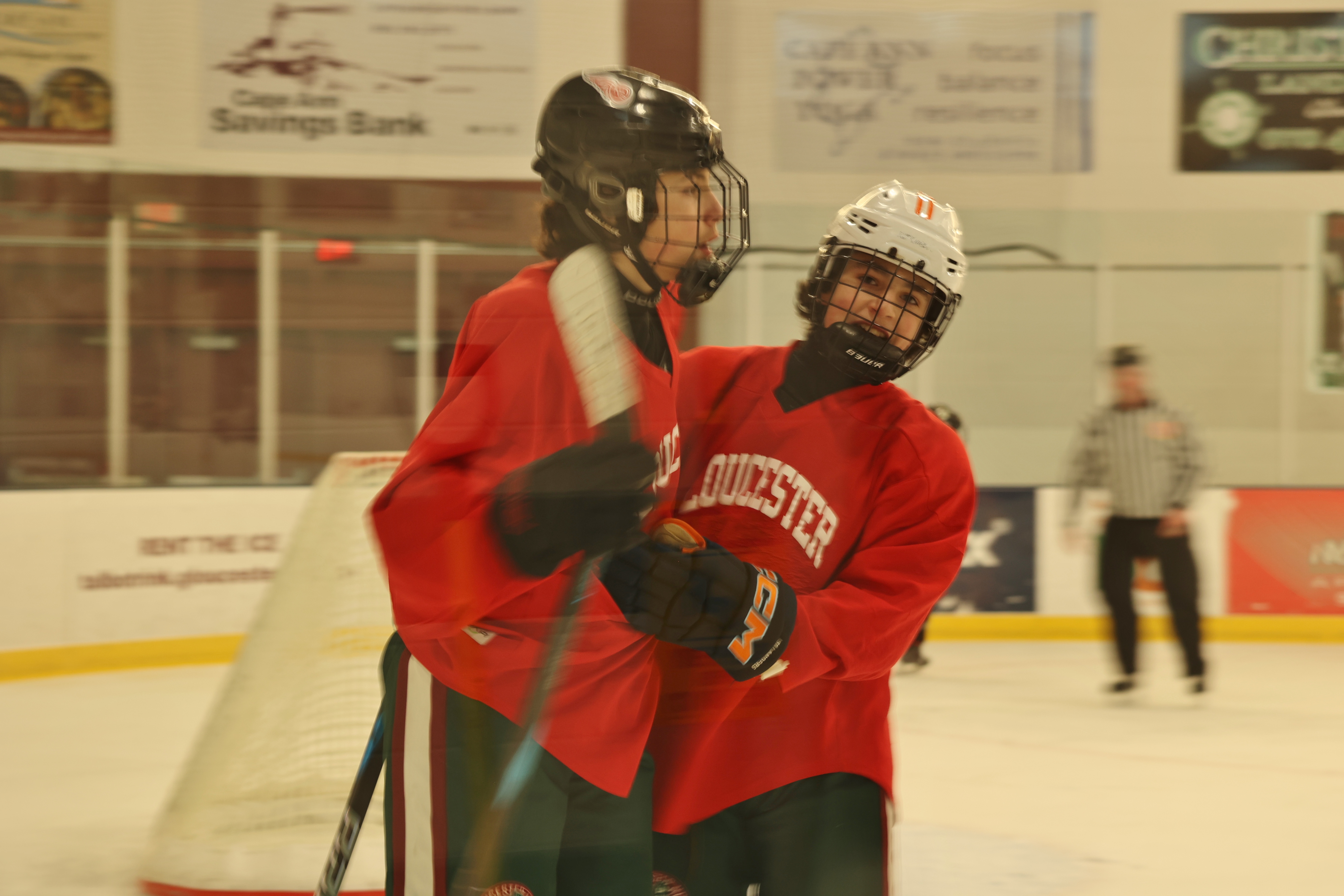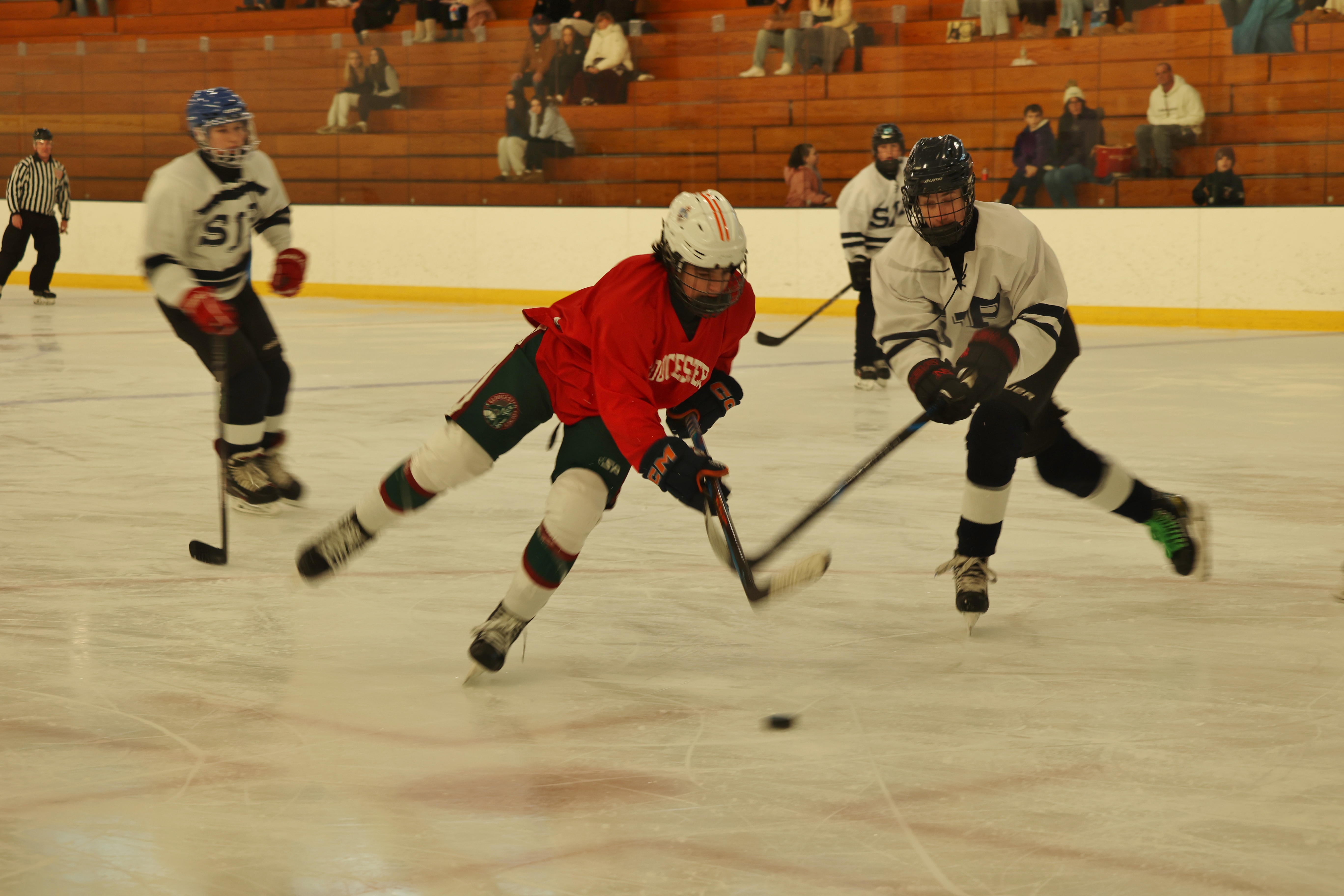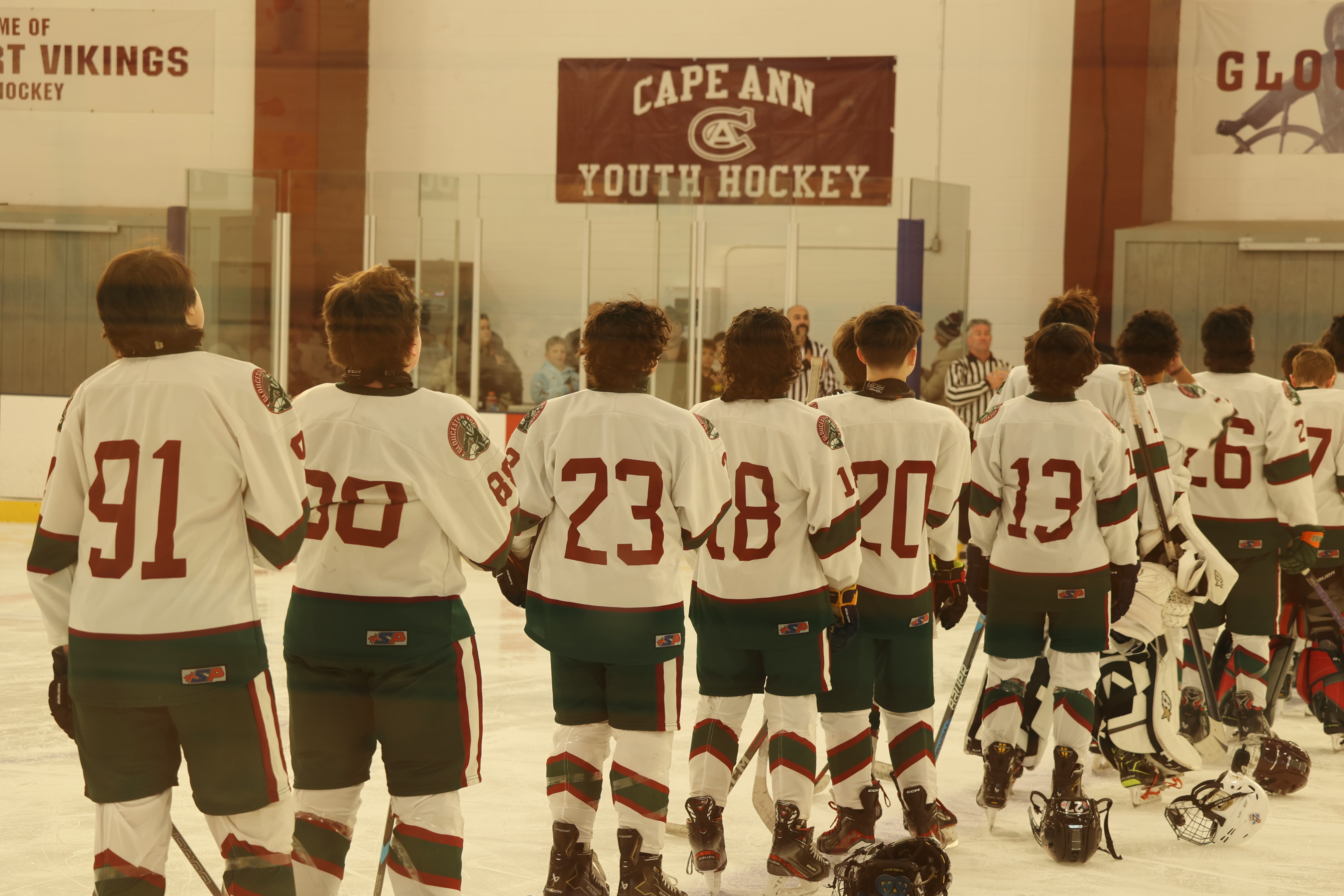 We attended a recent O’Maley Shamrocks Ice Hockey game recently to keep an eye on a couple of our favorite eighth grade players. It happened to be the game at which the 8th graders were recognized …there are 14 of them I believe so the impact for the future of the high school teams is significant. The team performed very well and although the lighting stinks, here’s a bit of a photo dump. Both teams started in white jerseys so the Gloucester team put on red or black jerseys in order to play. This made it difficult for me to try to make sure I got most of the players hightlighted, so I apologize for anyone overlooked in the following selection.