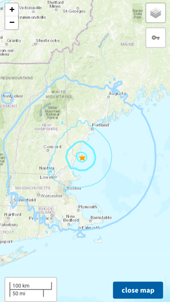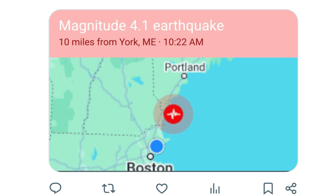 3.9 earthquake on Jan 27, 2025. 10:22 AM. Off York Harbor, ME., felt in Gloucester.