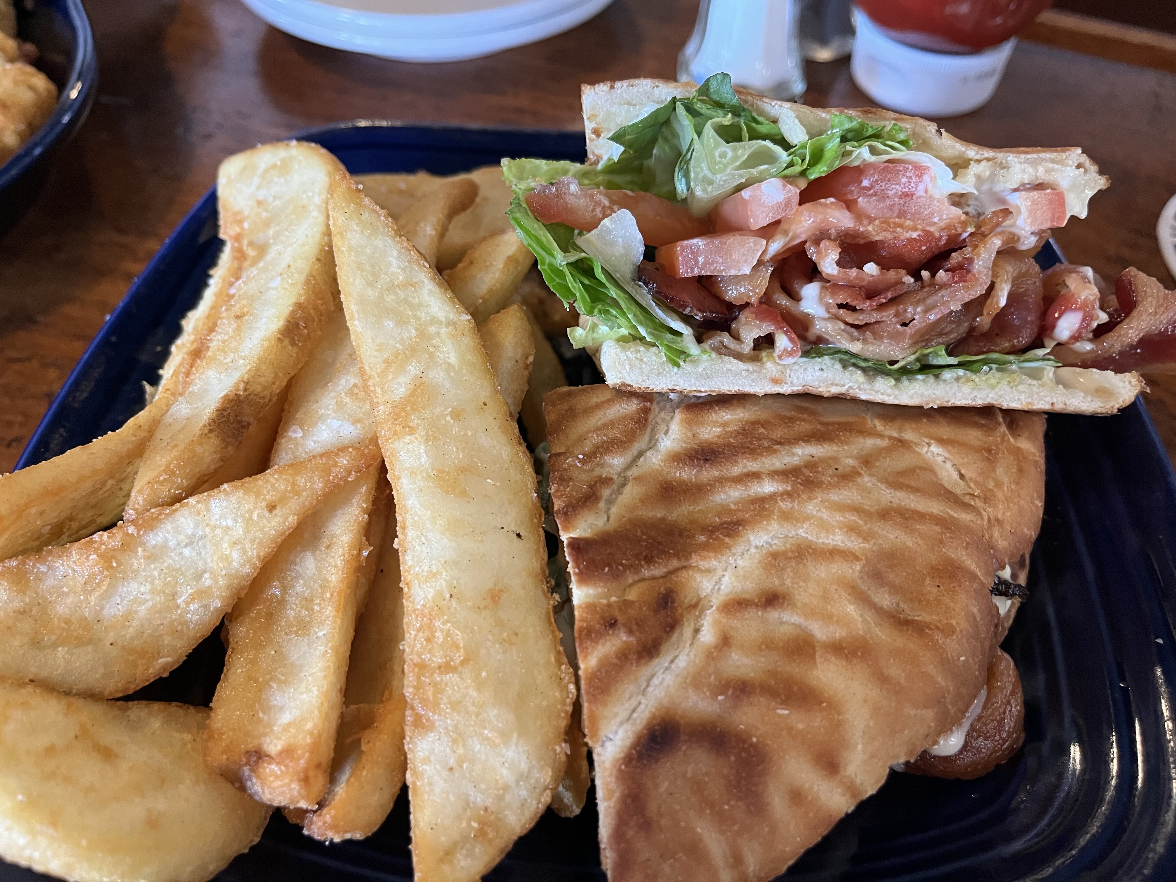I had a BLT on a toasted pita (genius) and Jim got the loaded tater tots. It was EXACTLY what we were looking for on that cold day. The menu is simple but varied enough to please most. The pub style atmosphere was comfortable and warm. If you’re in Amesbury, give it a go!