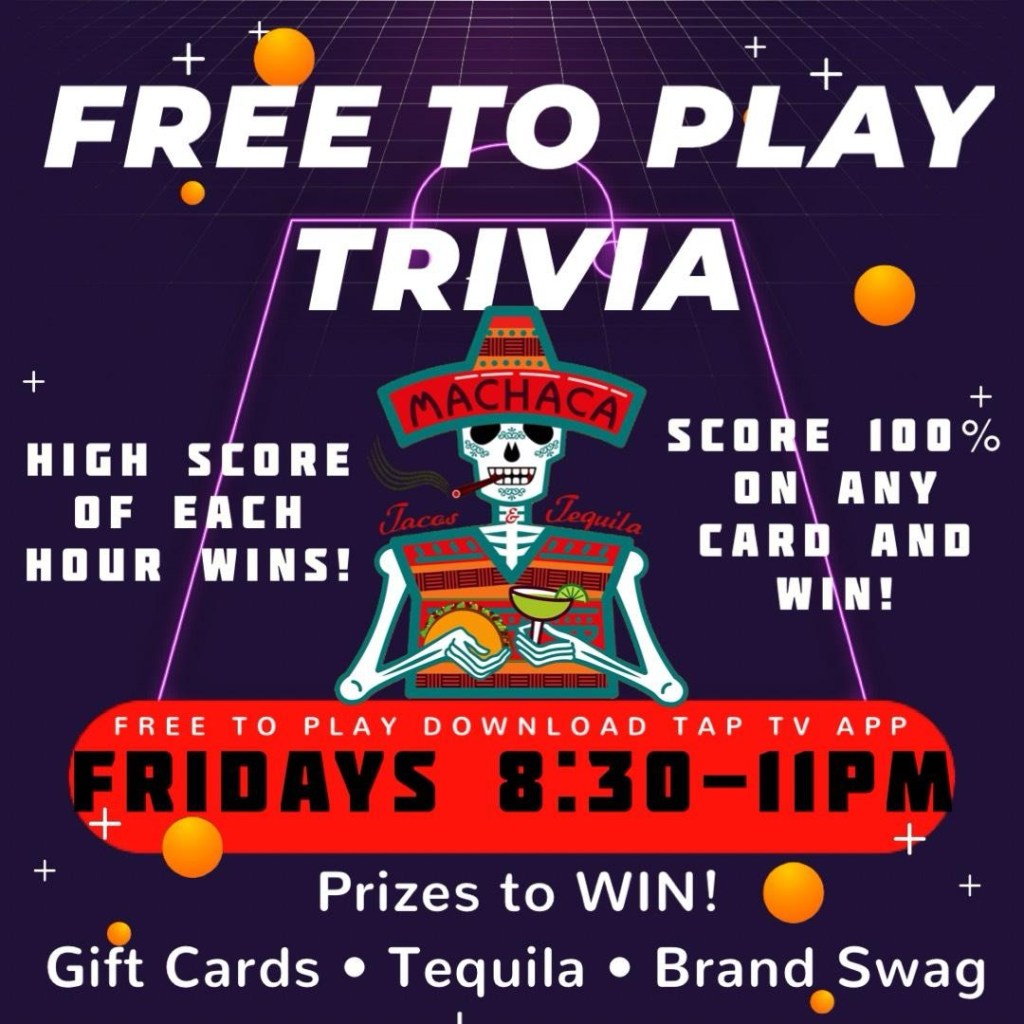 Join us every Friday from 8:30 PM to 11 PM for FREE TRIVIA and your chance to win awesome prizes!