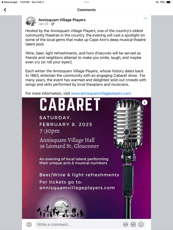 From the Annisquam Village Players regarding the annual Cabaret event: