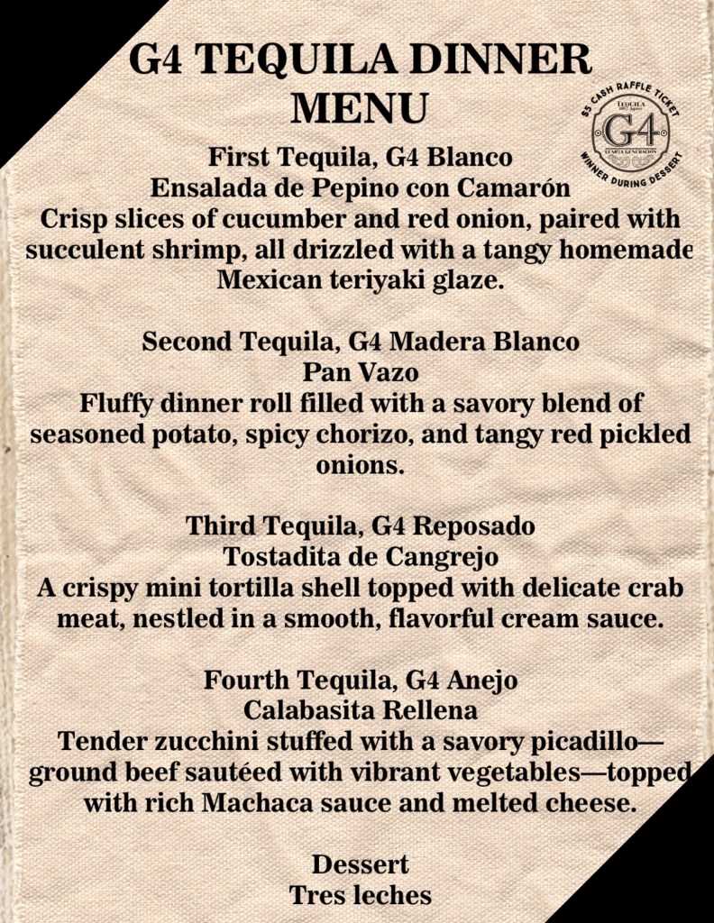 Join us for a night of delicious food and fantastic tequila at Machaca. Indulge in a carefully curated menu paired with the finest selection of G4 Tequila.