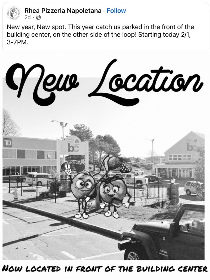 I noticed this update on where to locate Rhea Pizzeria Napoletana as of February 1 and thought you might be interested too. We definitely need to know where to find these guys! From their Facebook page: